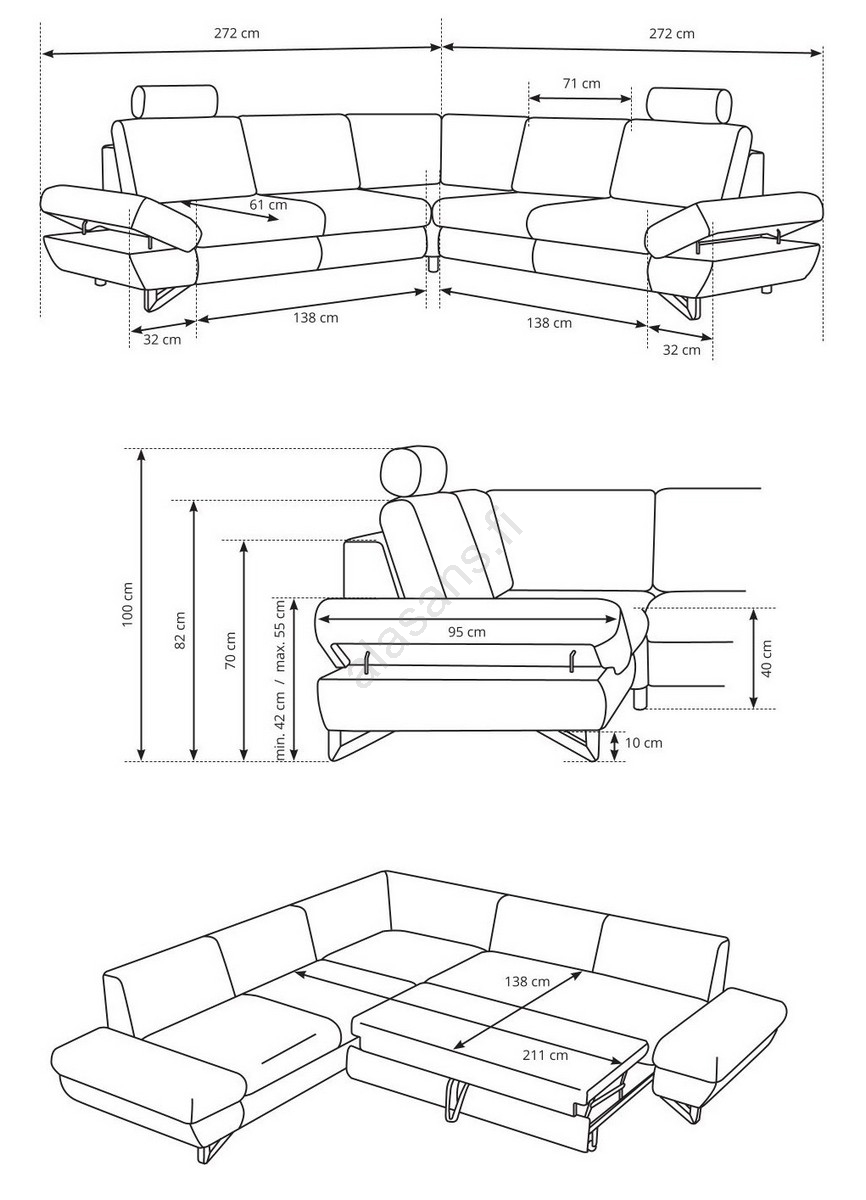 • Moderni avattava kulmasohva AVESTA (oikea kulma) on ihanteellinen valinta kaikille, jotka etsivät yhdistelmää tyyliä, mukavuutta ja käytännöllisyyttä.