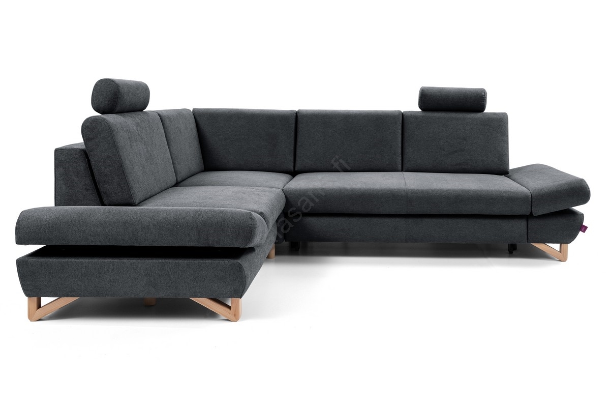 L-mallinen verhoiltu avattava kulmasohva AVESTA, vasen, säilytystilalla, antrasiitti | Alasans