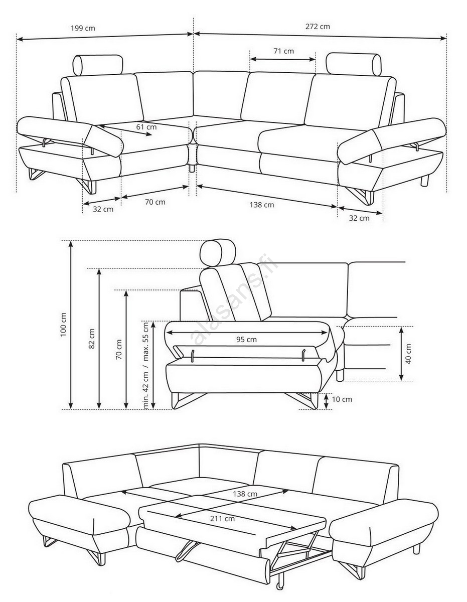 • Sohvassa on tilava säilytystila vuodevaatteille ja muille kausitavaroille.