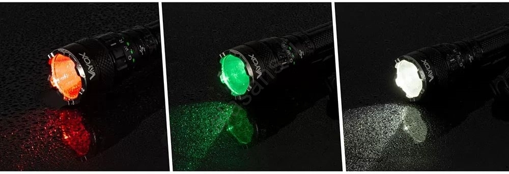• Mahdollisuus valita valkoinen (6500K), punainen tai vihreä valo.