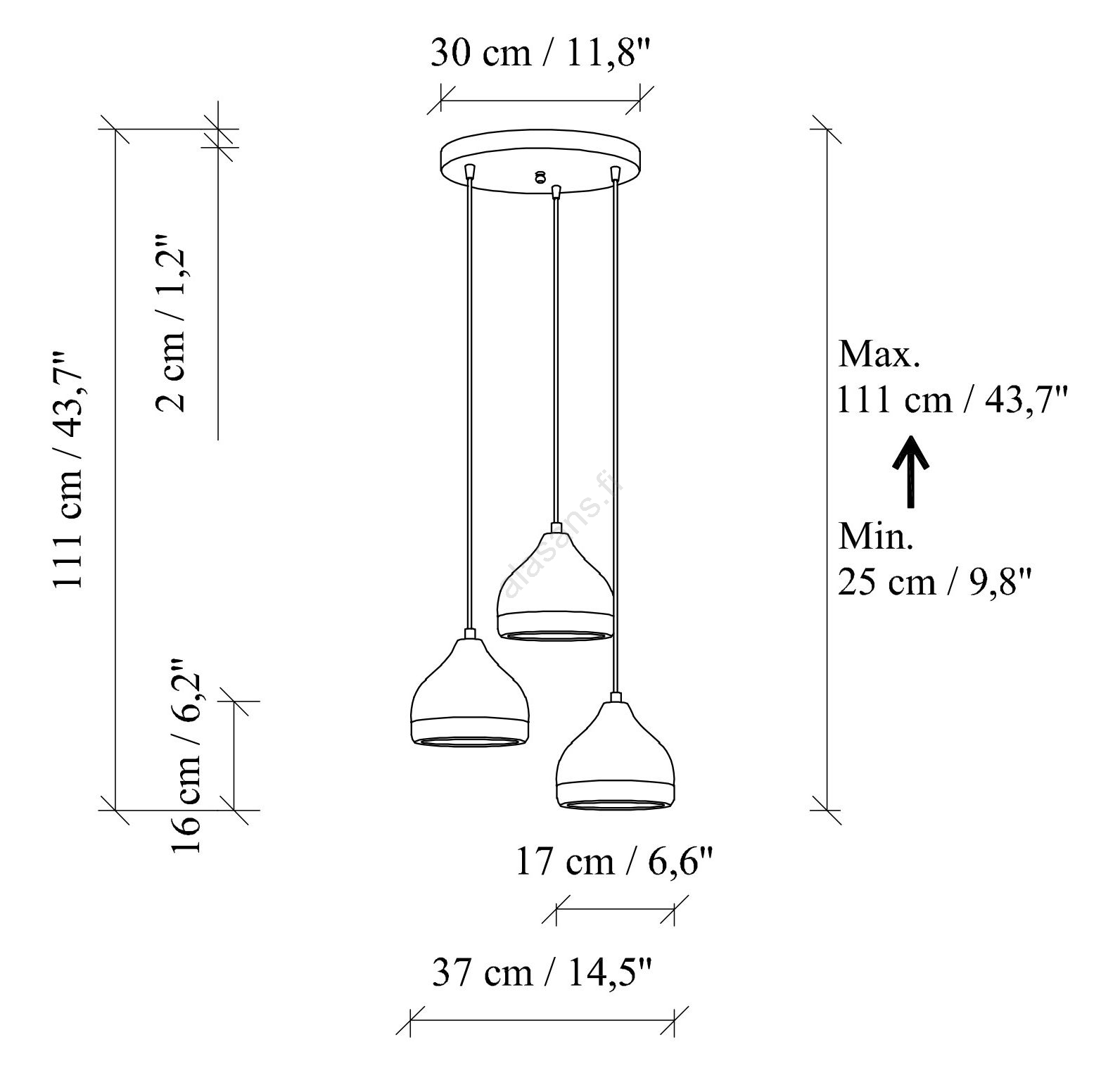 • Kattokruunu johdossa YILDO 3xE27/40W/230V