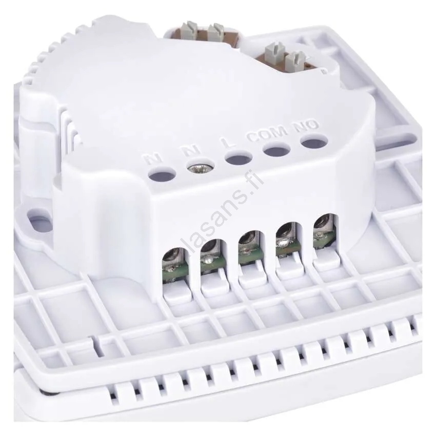 • Yksi termostaatti voi ohjata 230 V AC -järjestelmää tai toimia jännitteettömästi (kuivakosketin), mahdollisuus liittää lattialämpötila-anturi NTC 10 kΩ (pakettiin sisältyy, pituus 3 m).
