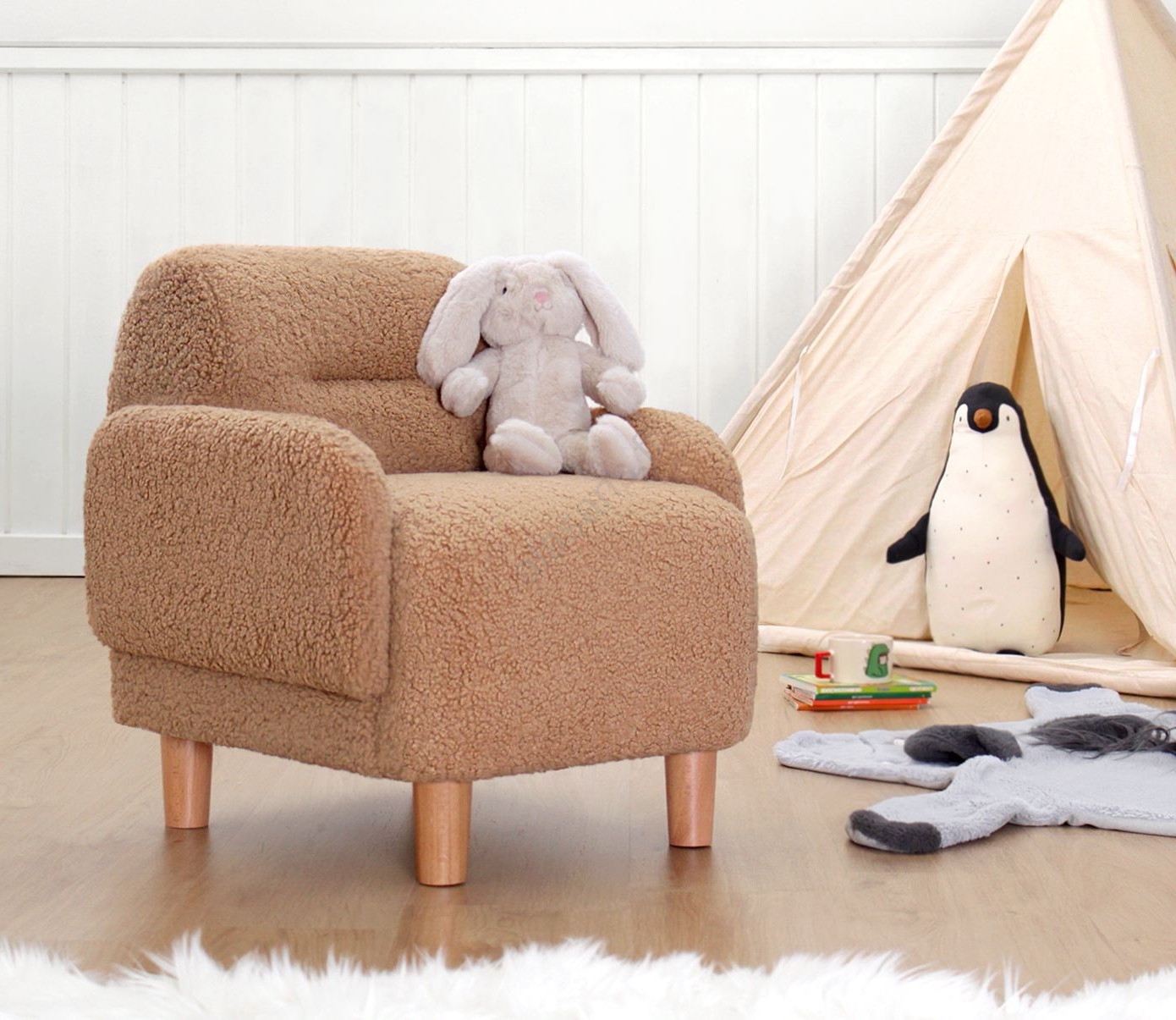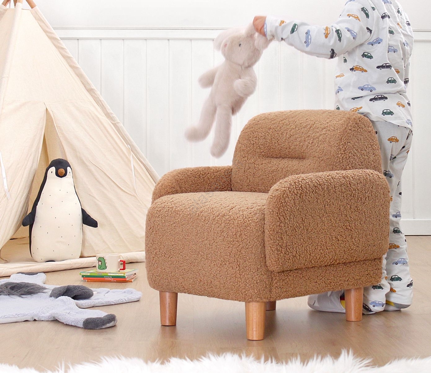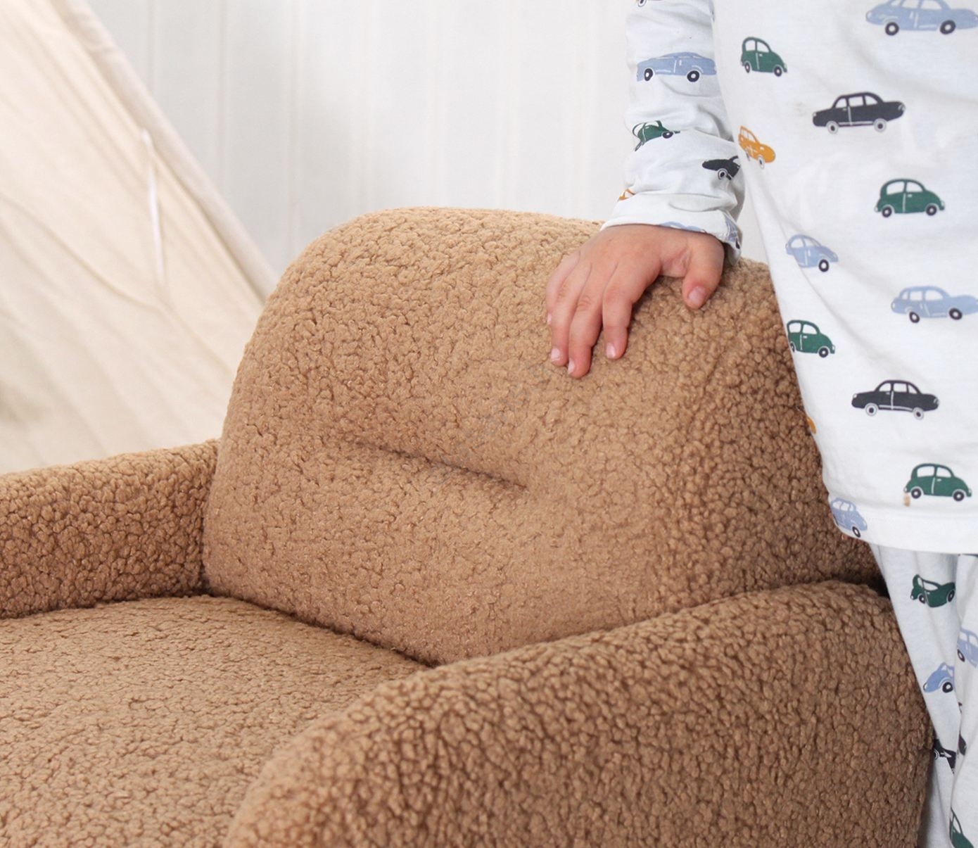 • Tämä viehättävä nojatuoli on suunniteltu erityisesti perheen pienimmille, tarjoten maksimaalista mukavuutta lukemiseen, lepoon tai leikkimiseen.