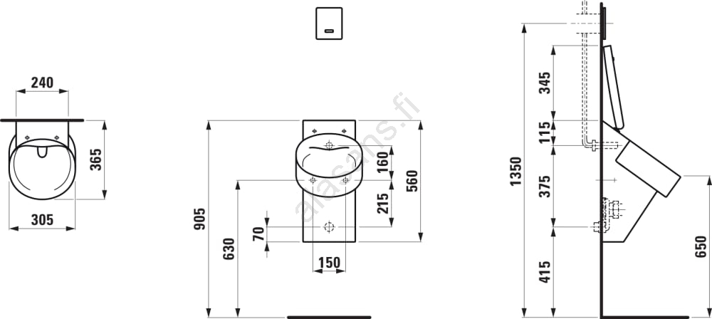 • Pisuaari on varustettu kiinnitysrei'illä peitekansille (kansi ei sisälly pakkaukseen).