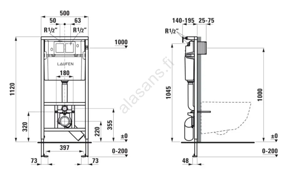 LAUFEN H8946600000001 - Seinään upotettava asennusmoduuli seinä-WC:lle LIS | Alasans