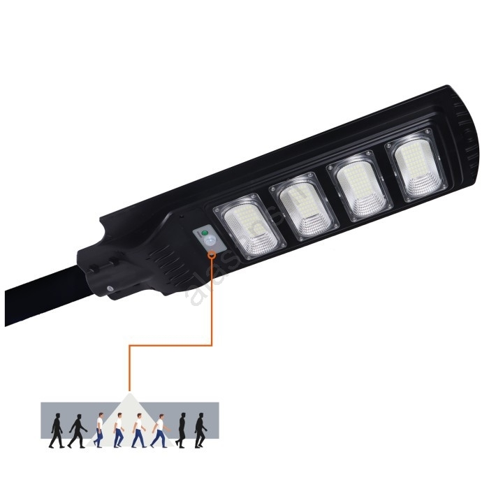 • Aurinkokäyttöinen katuvalaistuksen LED-valaisin, jossa on liike- ja hämäräanturi.