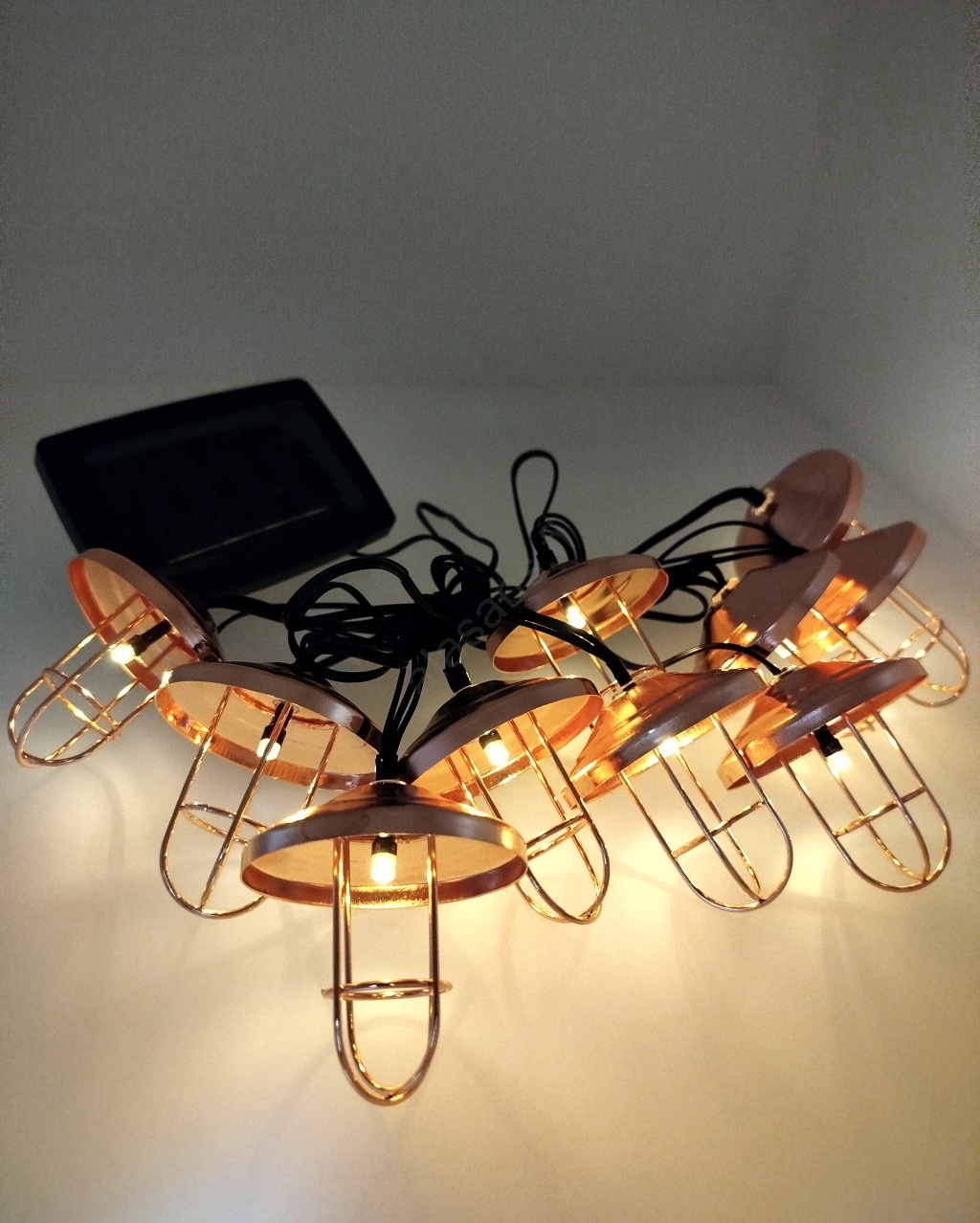 LED-aurinkoketju 10xLED, 1,2 V, 300 mAh, 3,8 m, IP44, kuparinvärinen