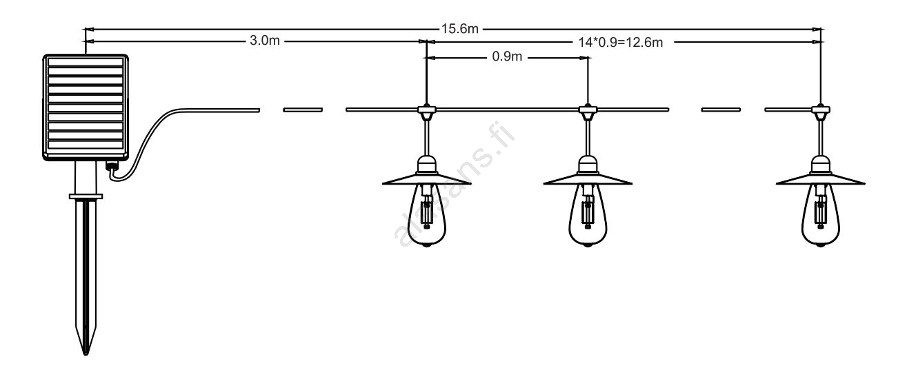 • Lamppujen välinen etäisyys: 0,9 m.