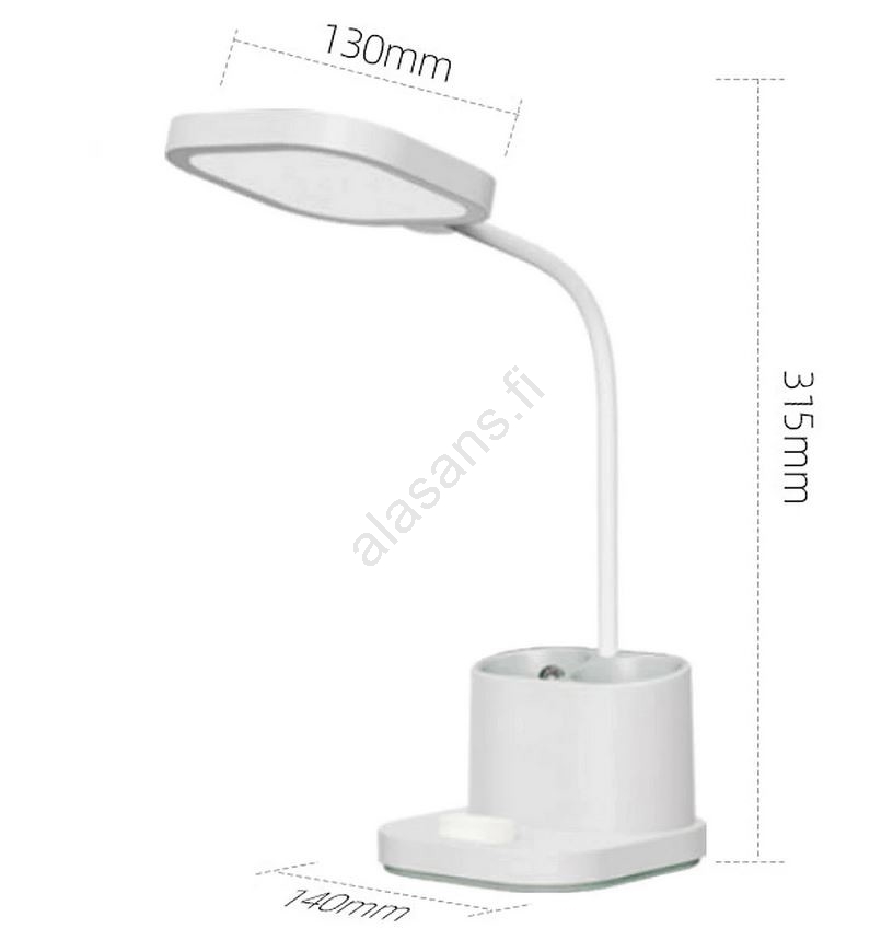 LED himmennettävä ladattava pöytälamppu pidikkeellä ja powerbankilla 5W/5V/2400m | Alasans