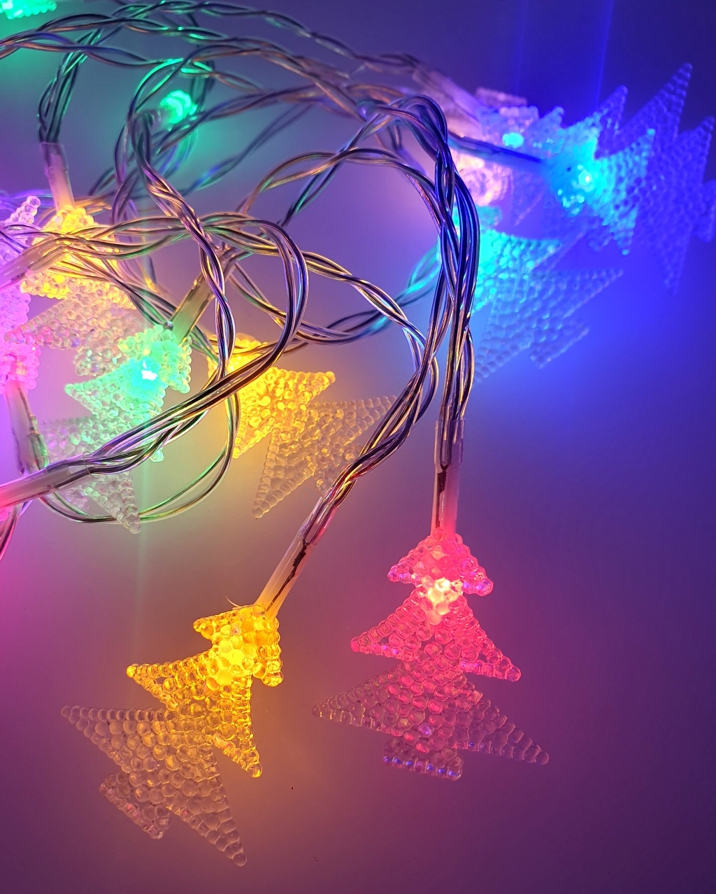 LED-jouluketju ulkokäyttöön 20xLED/2xAA 2,2 m IP44 moniväriset kuusenmuotoiset koristeet