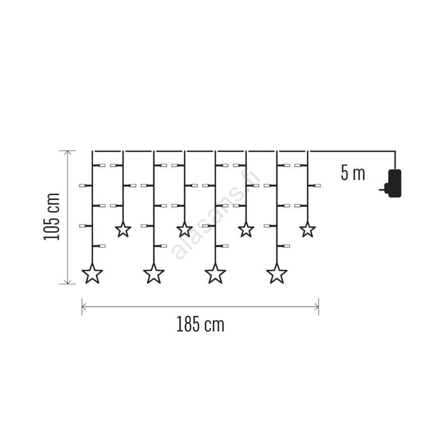 • LED-joulun valoverho, jossa on tähtiä.