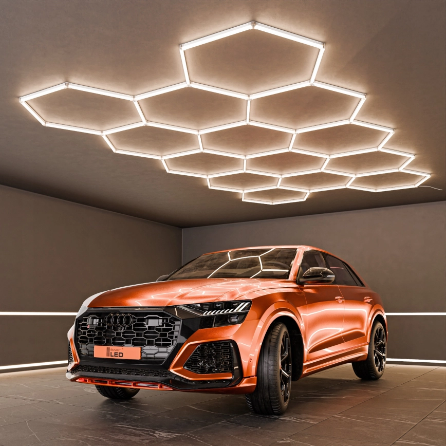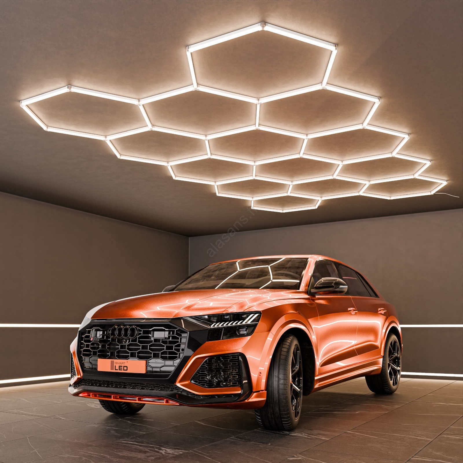 • Kuusikulmaisen rakenteen ansiosta valaistus toimii sekä esteettisenä yksityiskohtana että tehokkaana valaistusjärjestelmänä.