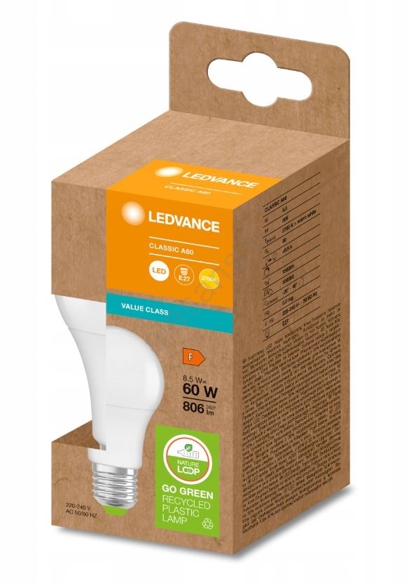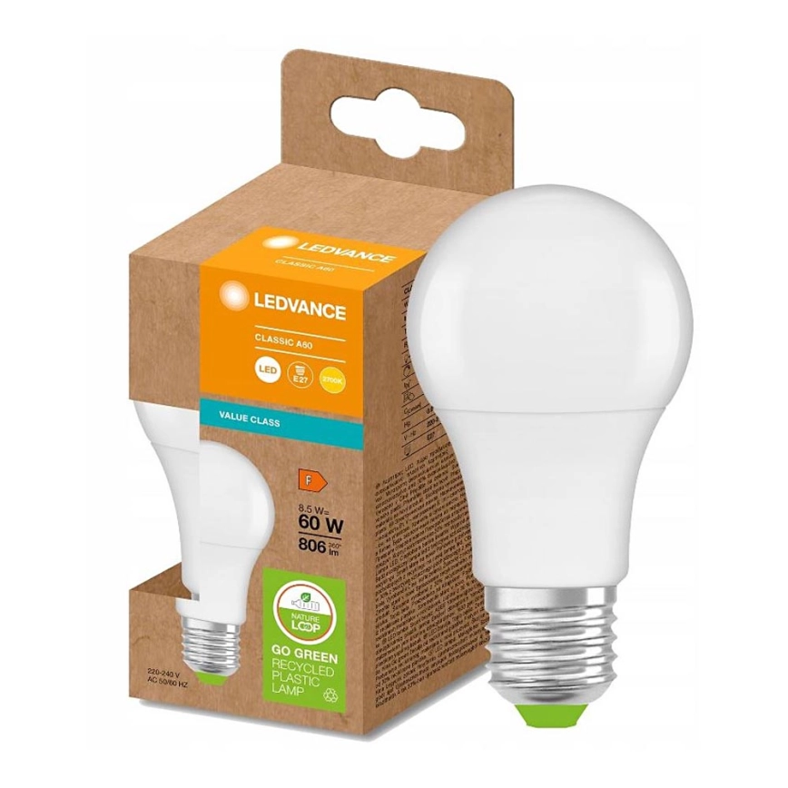 LED-lamppu kierrätetystä muovista A60 E27/8,5W/230V 2700K - Ledvance