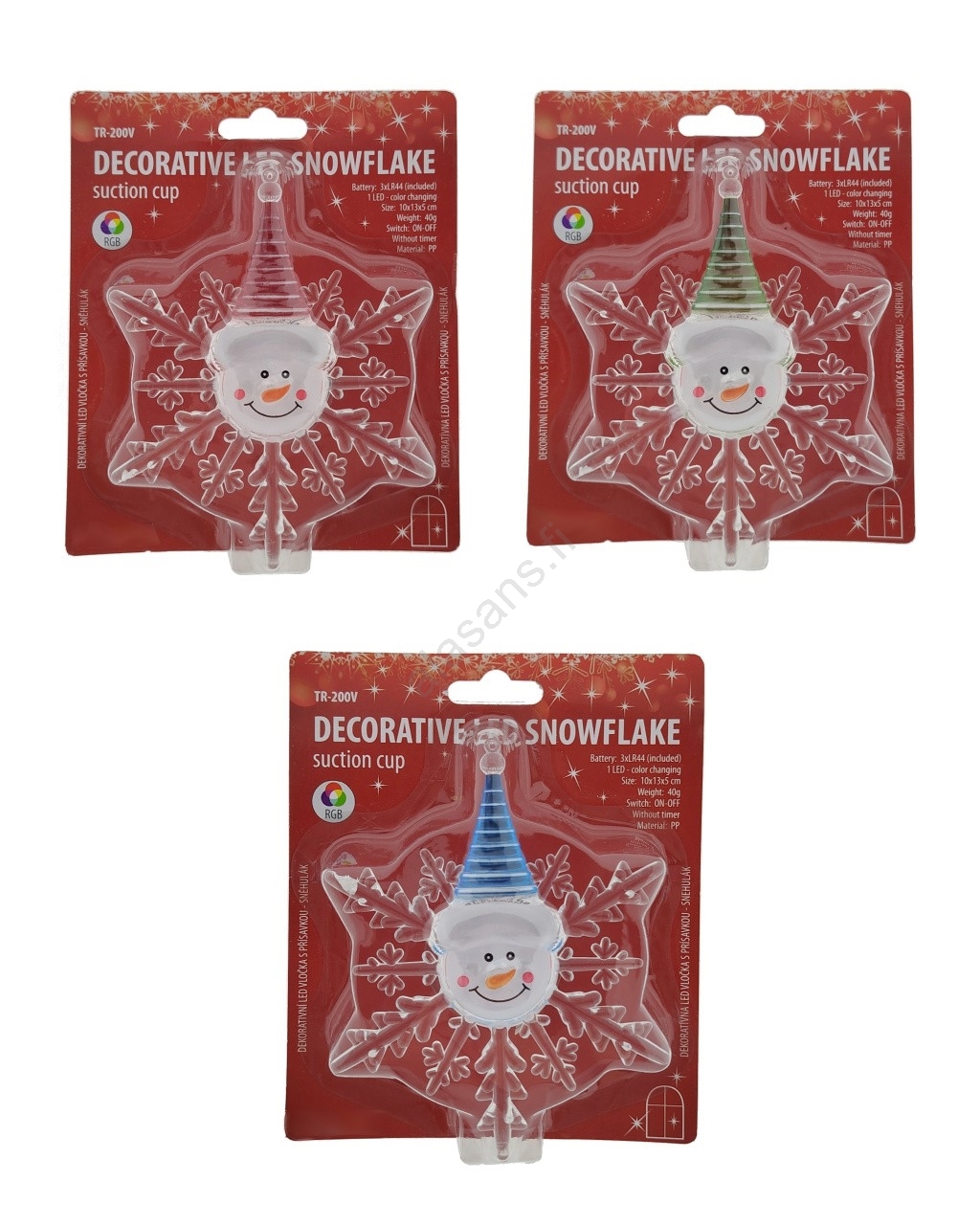 LED RGB joulukoriste imukupilla LED/3xLR44 lumiukko punainen/sininen/vihreä | Alasans
