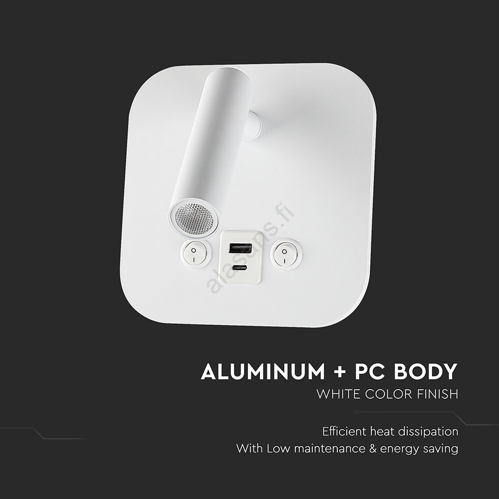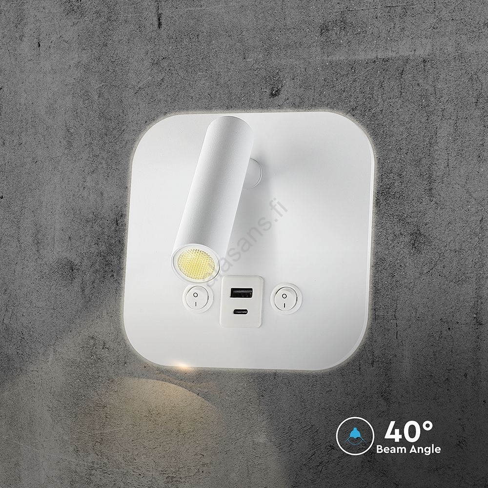 LED-seinäkohdevalaisin USB-portilla LED/8W/230V 3000K valkoinen | Alasans
