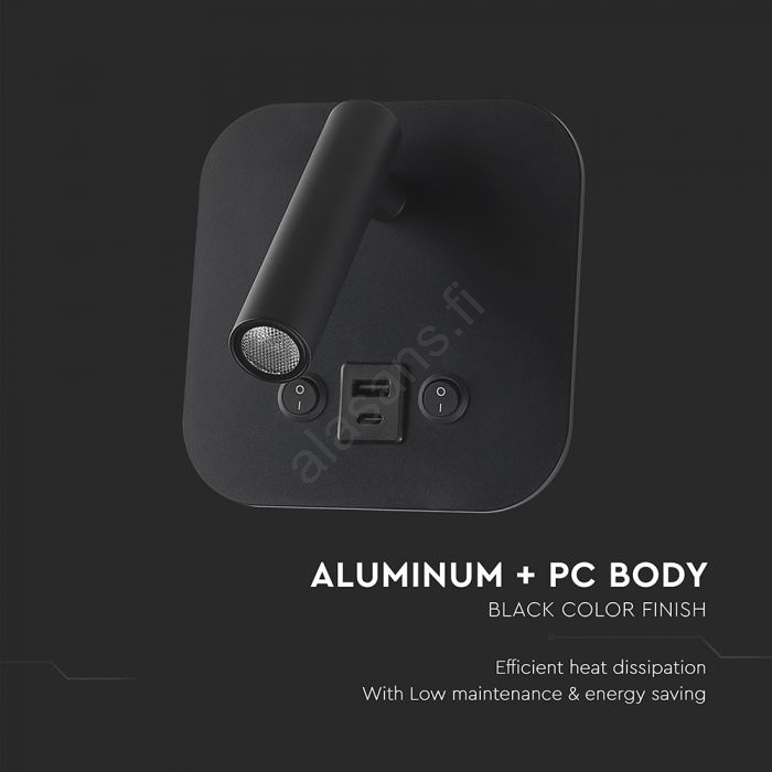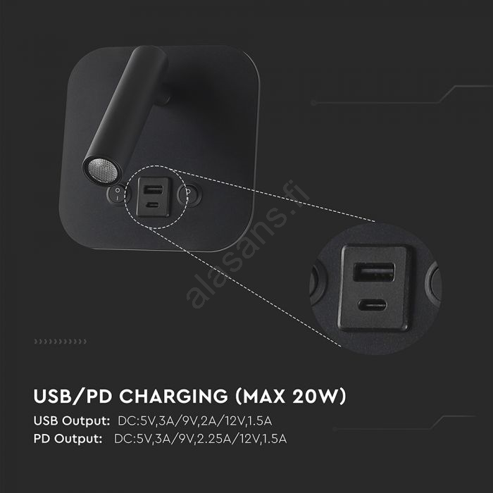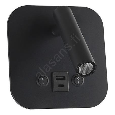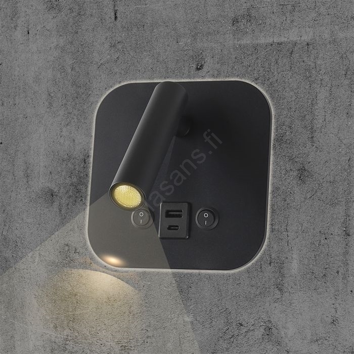 LED-seinäspotti USB-portilla LED/8W/230V 3000K musta | Alasans