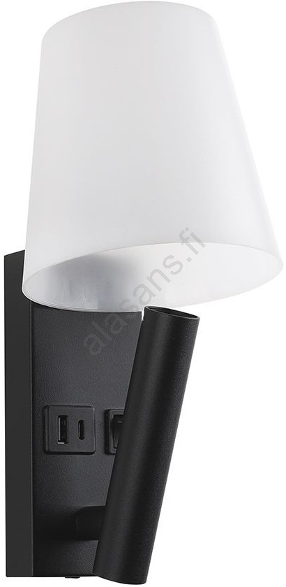 LED-seinävalaisin USB-portilla LED/2W/230V 3000K musta/valkoinen | Alasans