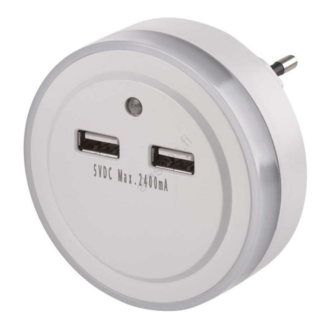 LED-yövalo pistorasiaan valotunnistimella+2xUSB 3xLED/0,3W/230V | Alasans