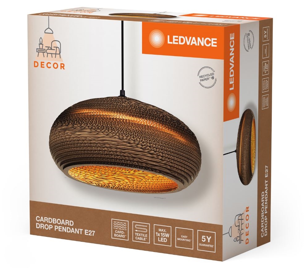 Ledvance - Kattokruunu johdossa DECOR CARDBOARD 1xE27/15W/230V halkaisija 40 cm merkitsee kaunista ja toimivaa muotoilua.  Valoon sopii polttimo, jossa on E27-kanta. Täältä voit ostaa myös muita lamppuja edulliseen hintaan. Mielenkiintoinen lisä kotiisi.