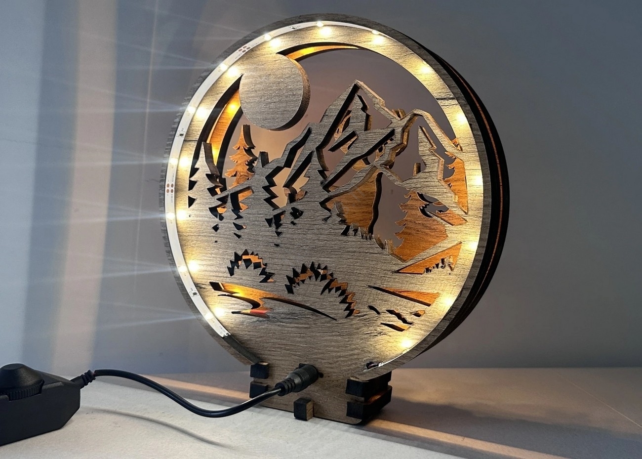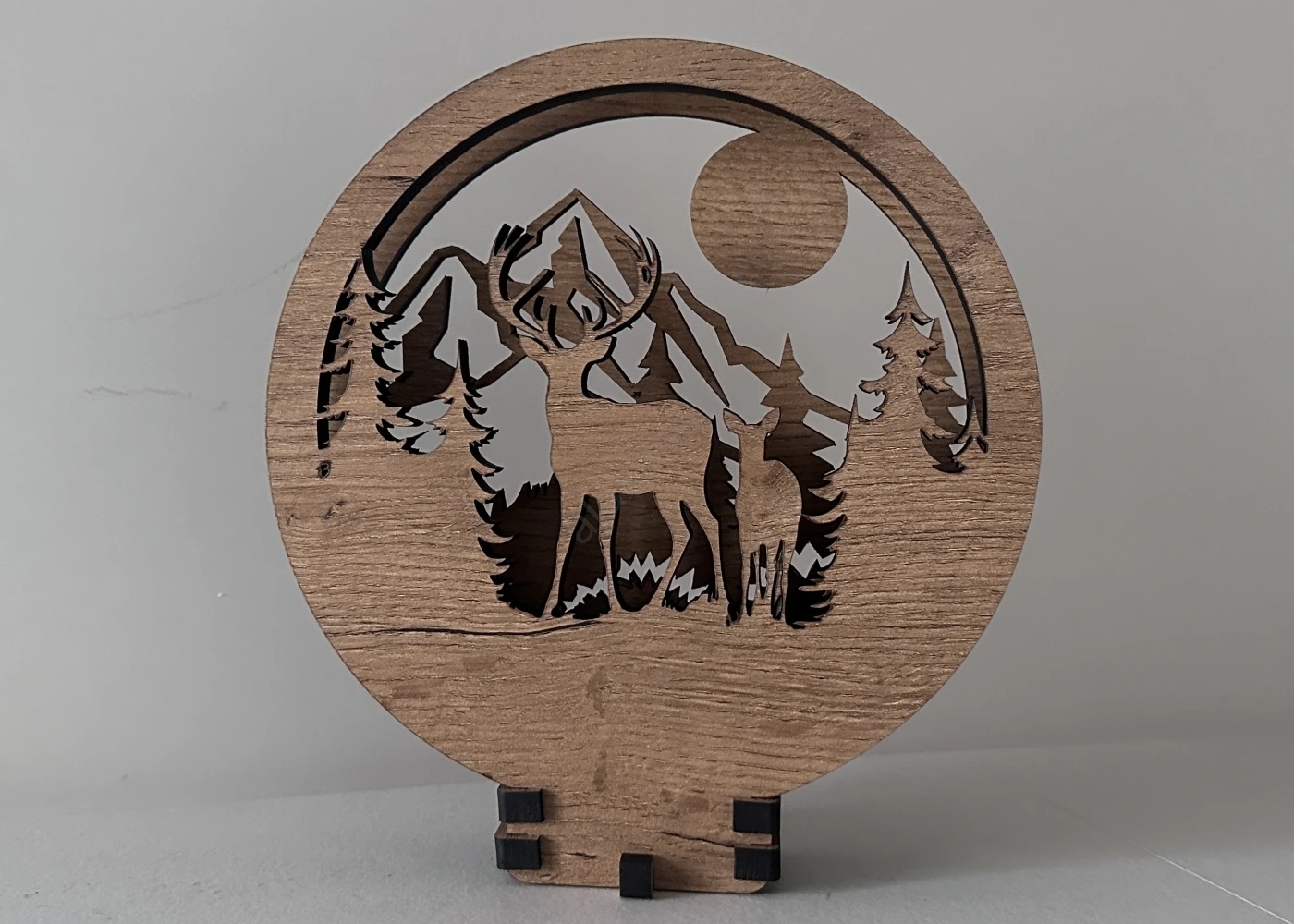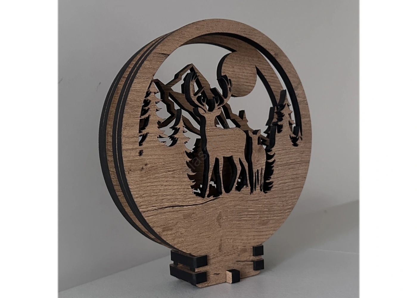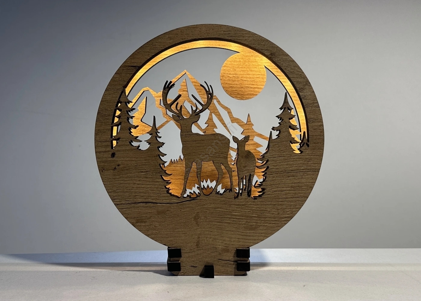 Li-Go 23592/DUB2 - LED Himmennettävä pöytäkoriste LED/12W/230V 20x22 cm tammi/peura ja naaraspeura