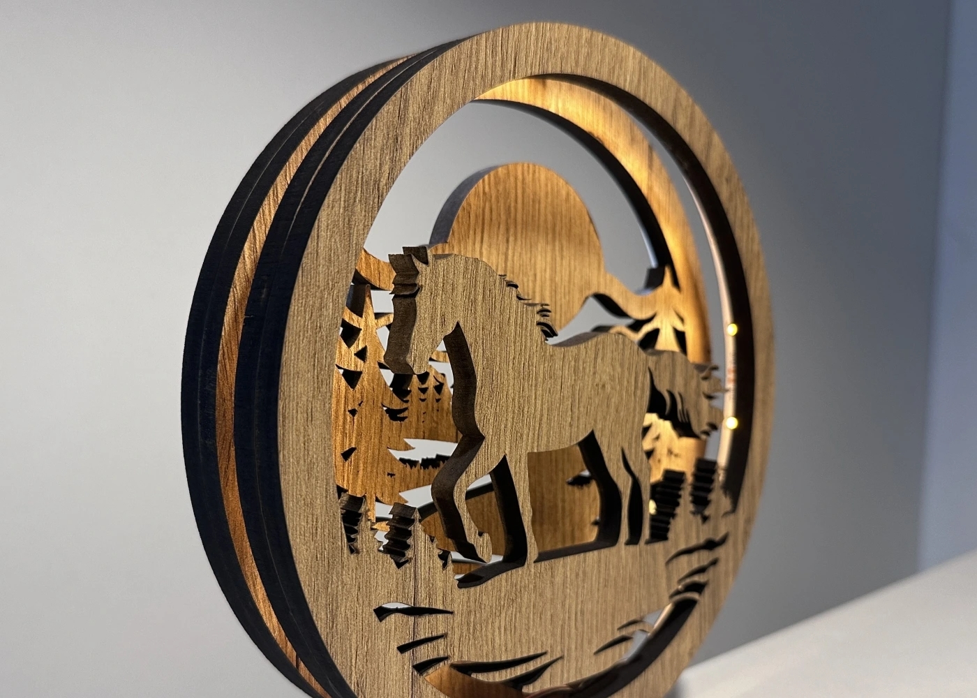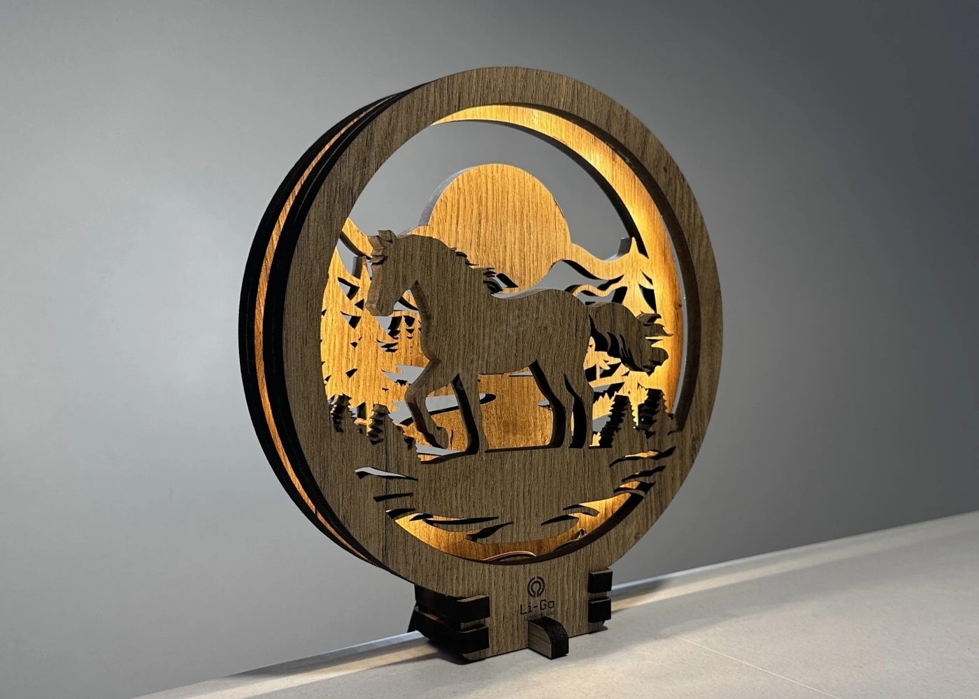 Li-Go 23598/DUB2 - Himmennettävä LED-pöytäkoriste LED/12W/230V 20x22 cm tammi/hevonen