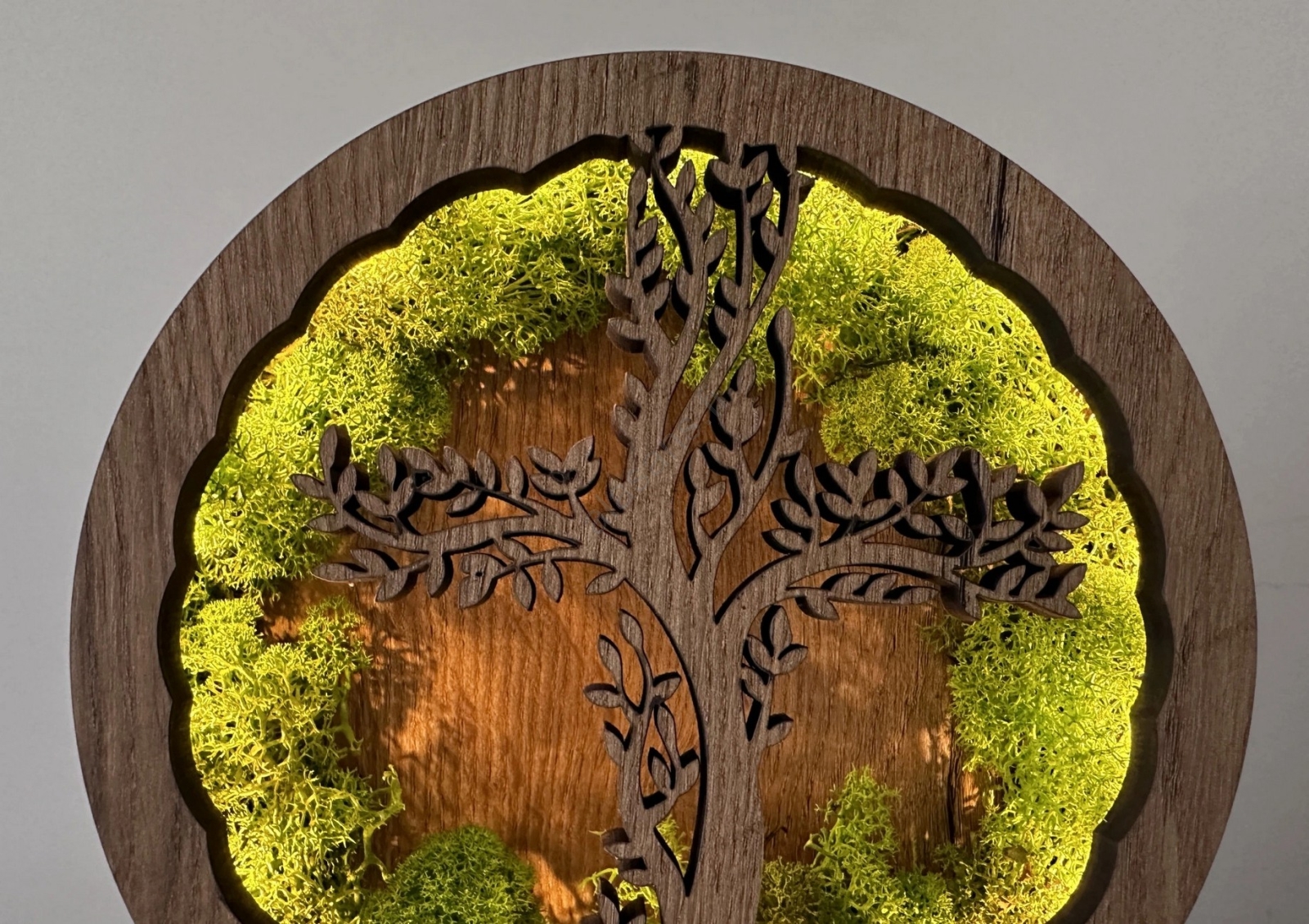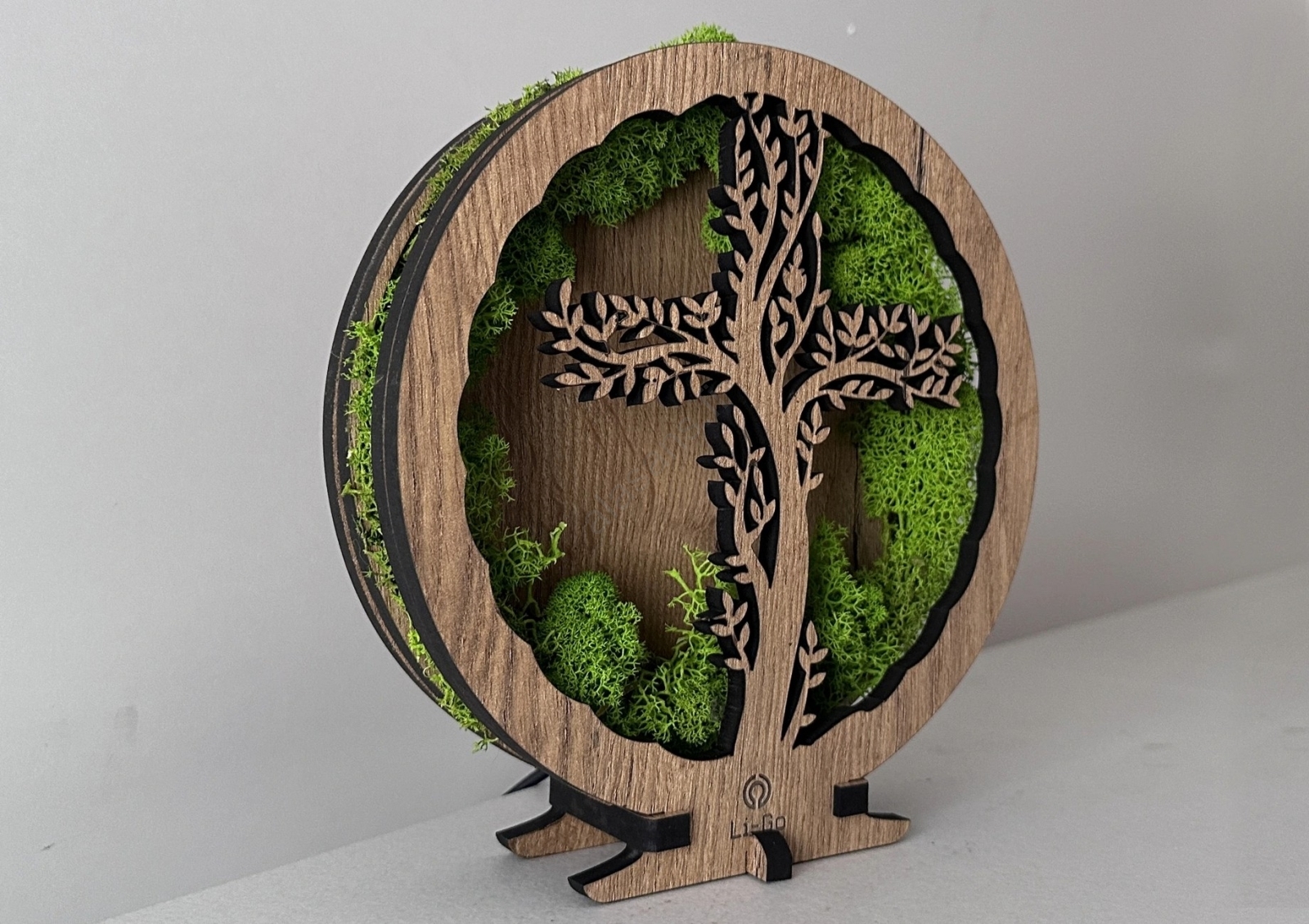 Li-Go 23622/DUB2 - himmennettävä LED-pöytäkoriste LED/12W/230V 20x22 cm tammi/sammalessa oleva risti