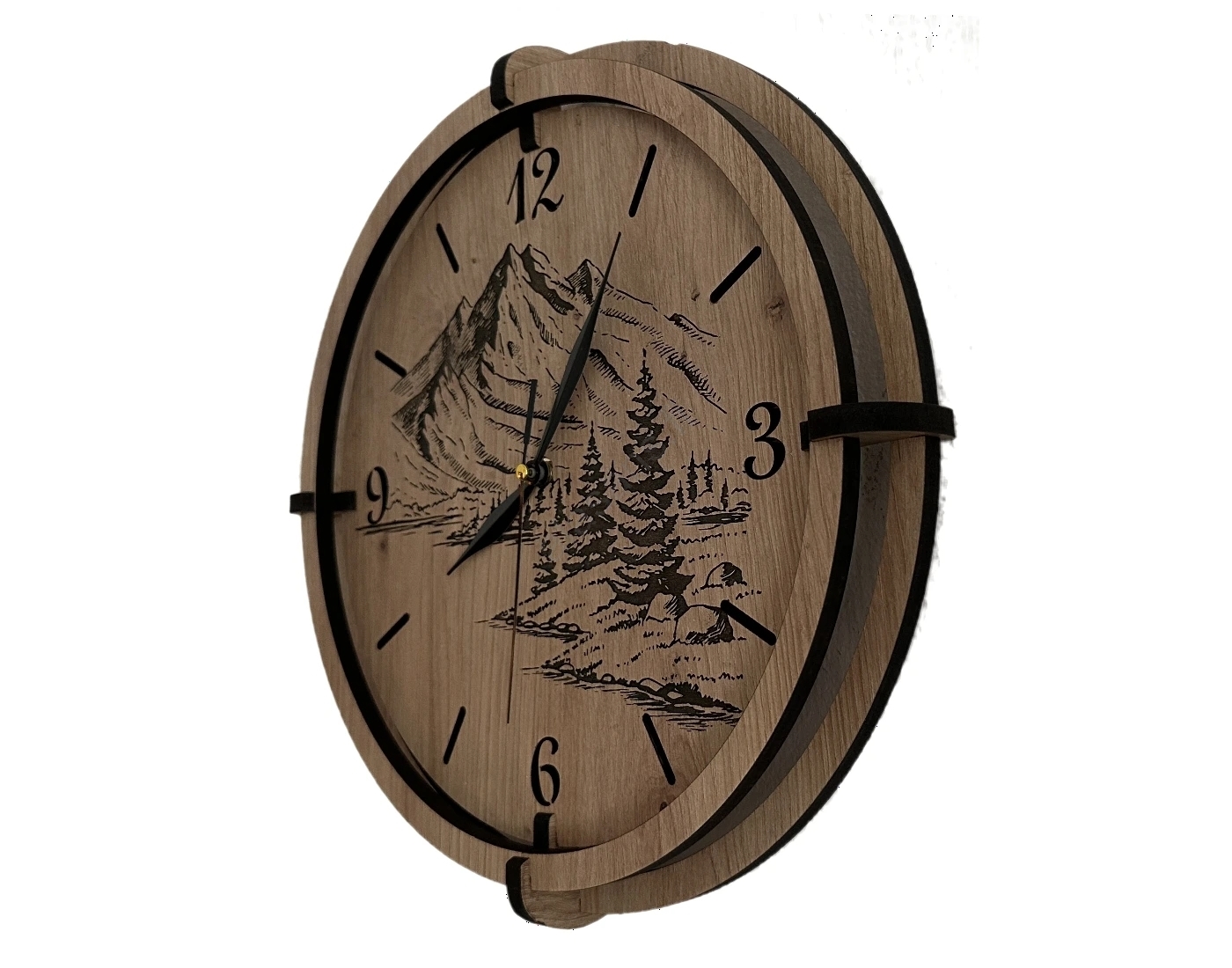 • Li-Go 23676/DUB5 - Puinen seinäkello 1xAA Ø 32 cm tammi/Vuoret