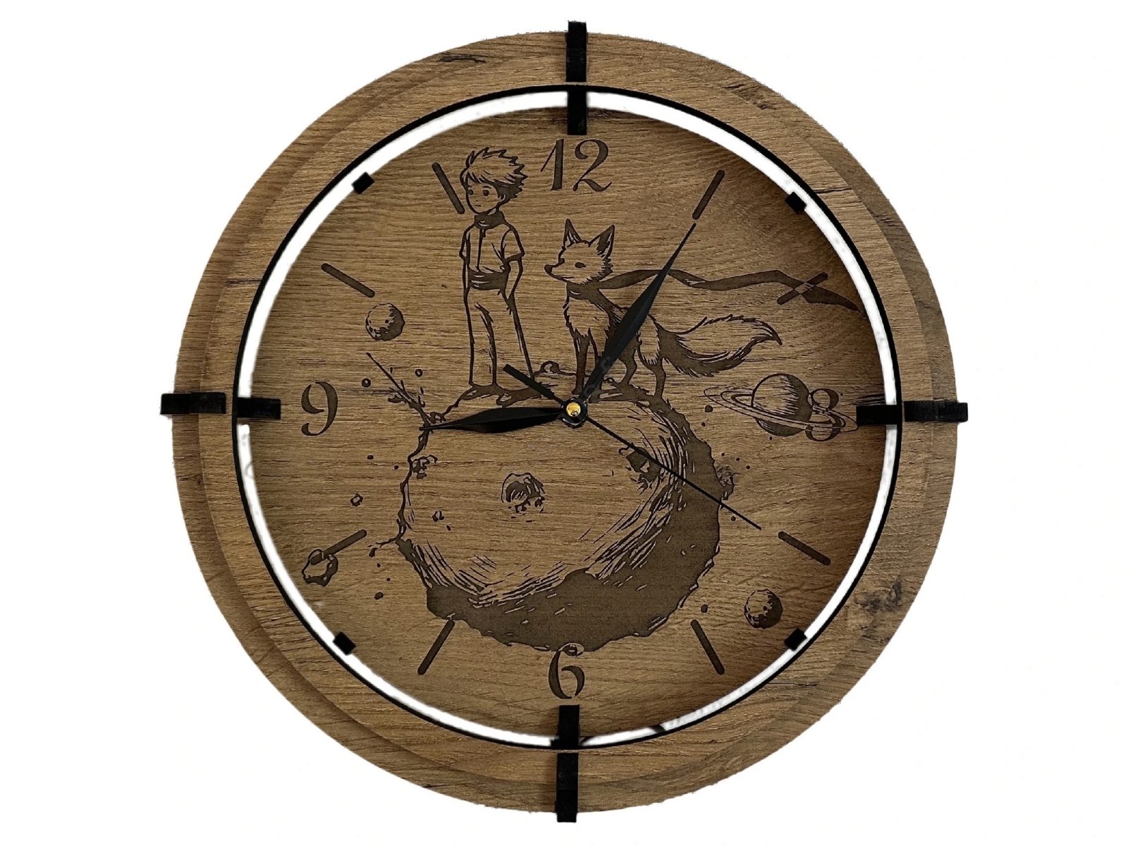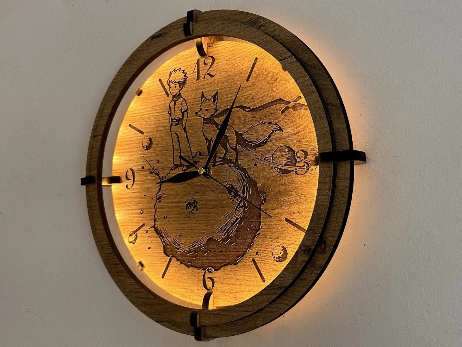 Li-Go 23712/DUB/BAT2 - Himmennettävä LED-kello liiketunnistimella LED/10W/5V 20000 mAh + 1xAA halkaisija 32 cm tammi/Pikku prinssi