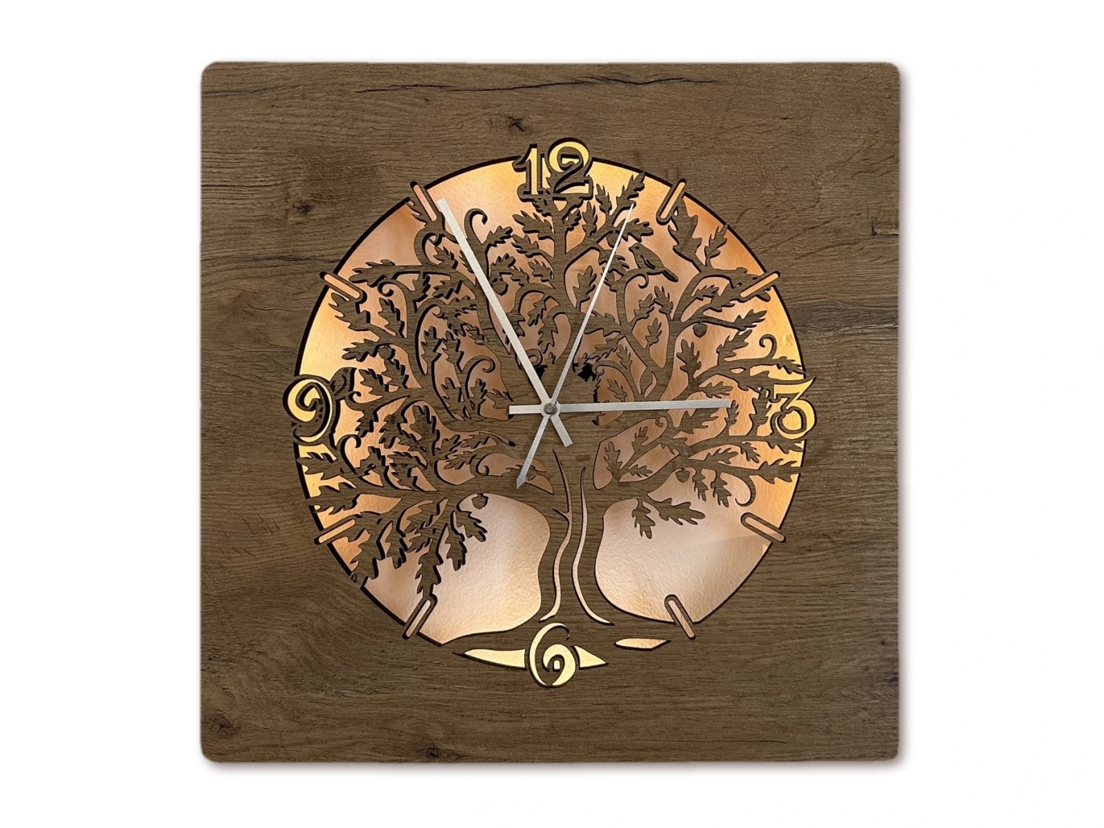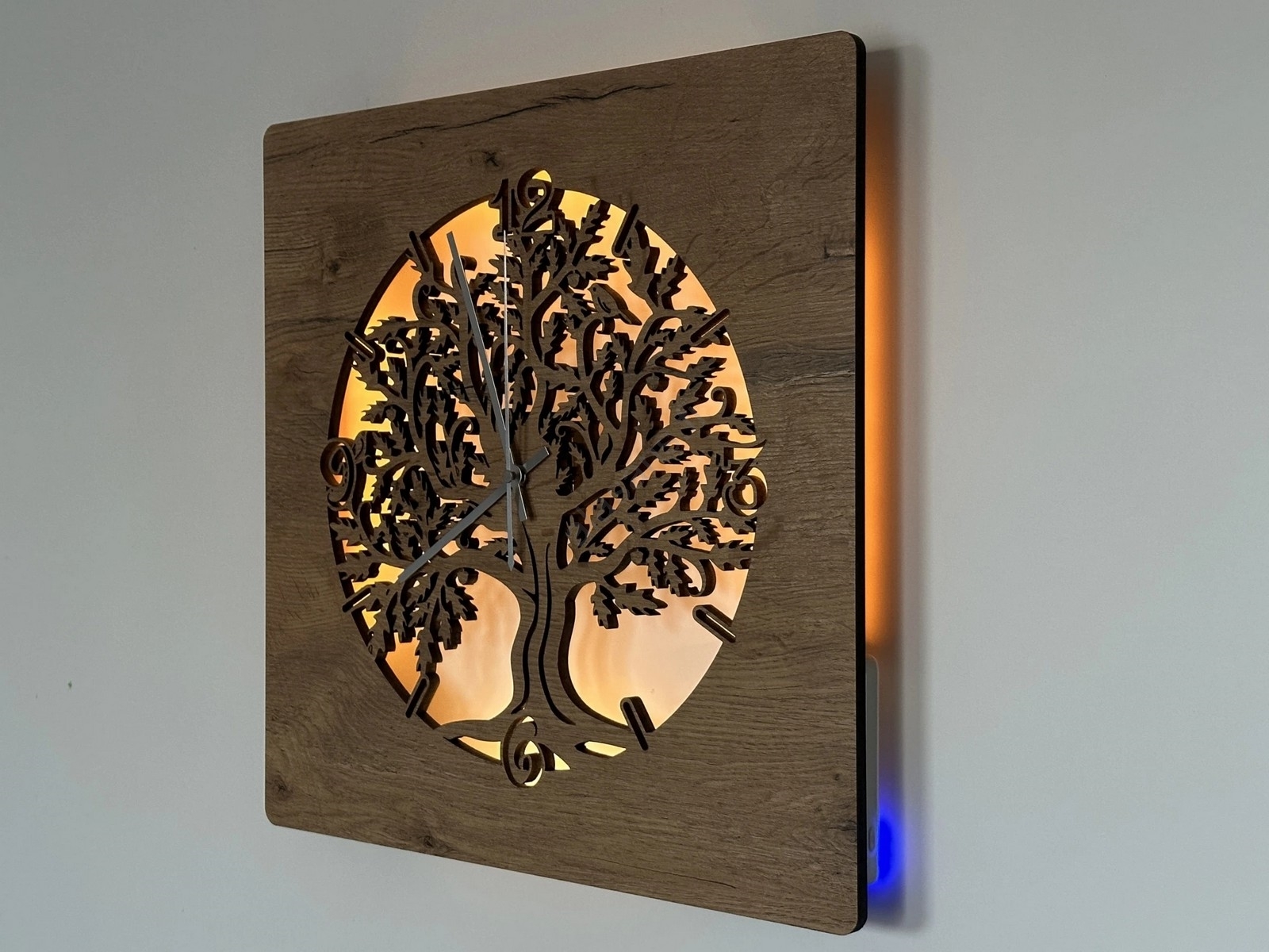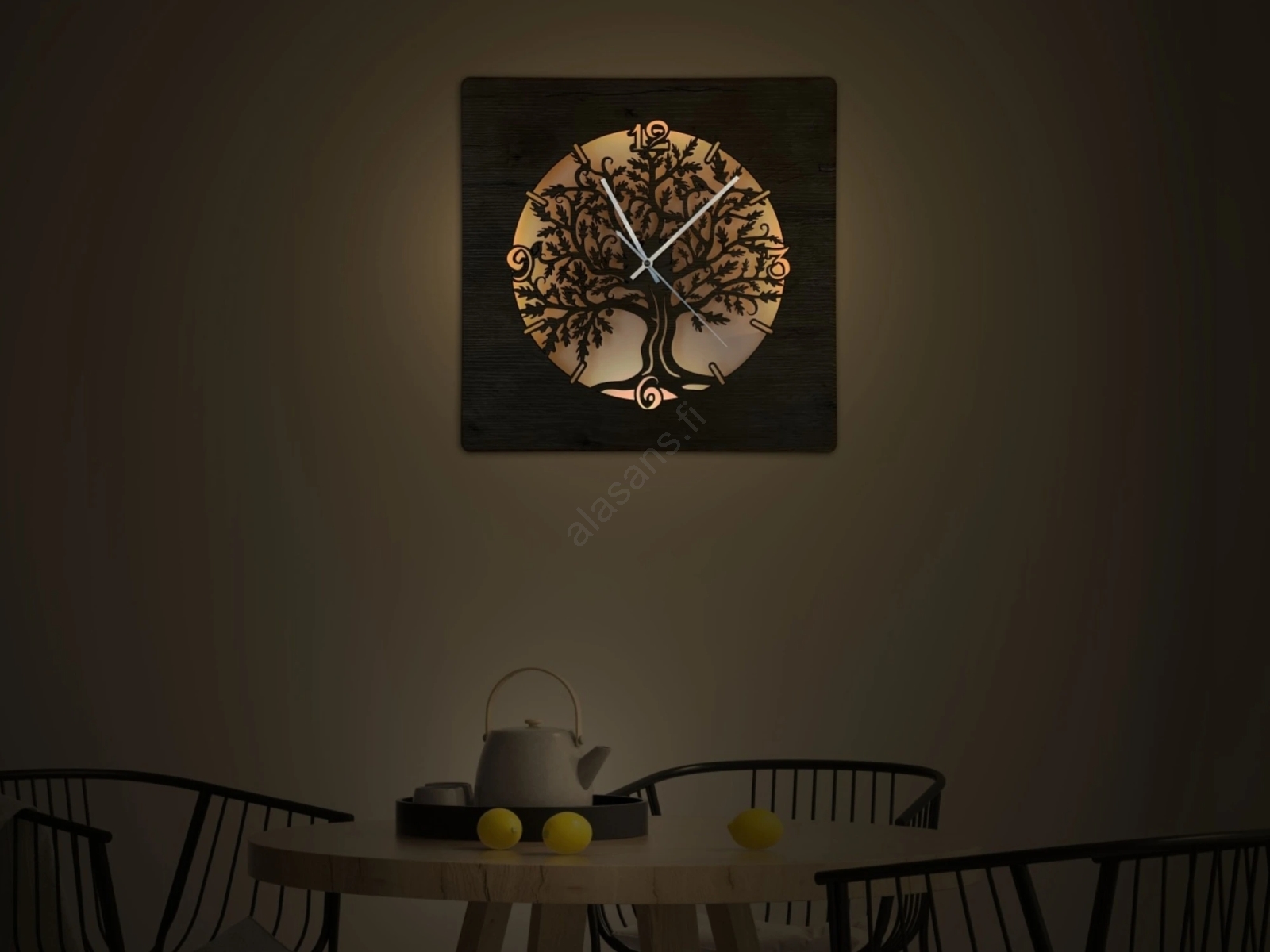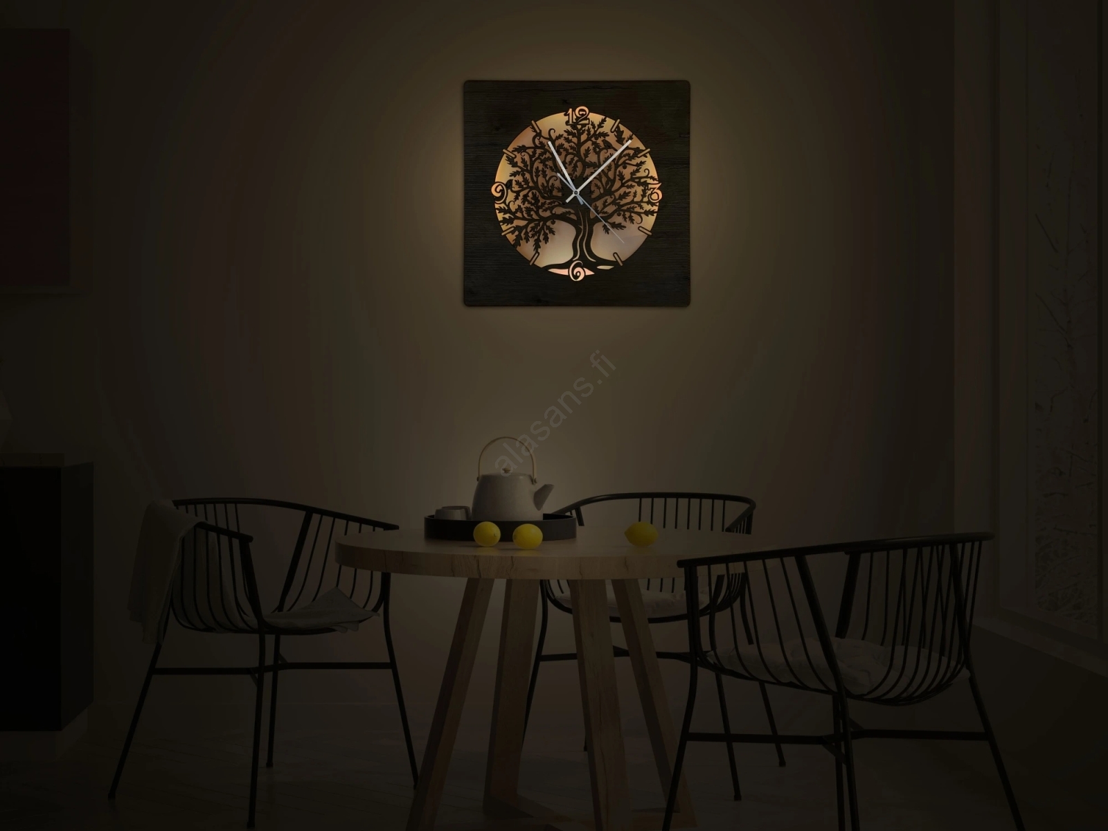 • Valaistu seinäkello ainutlaatuisella kaiverretulla koristekuviolla.