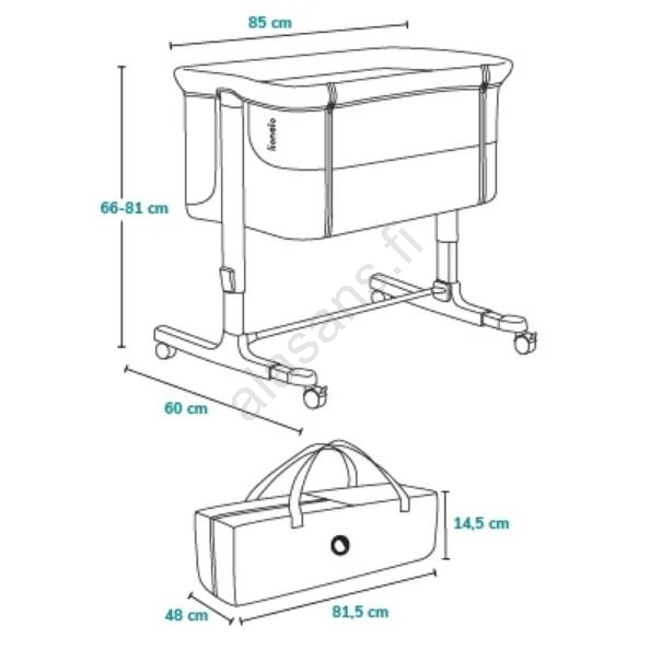 • Monitoiminen 3-in-1-vauvasänky: itsenäinen sänky, sivusänky ja kehto.