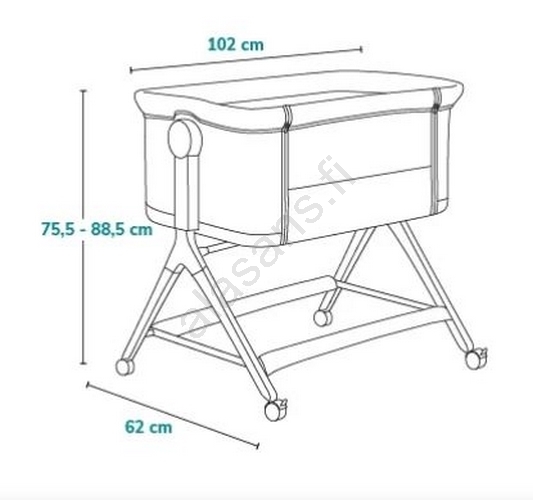 • Kehto keinuu tasaisella pinnalla, ei liukukiskoilla (keinunta tapahtuu vain sängyn yläosassa, ei koko rakenteessa).