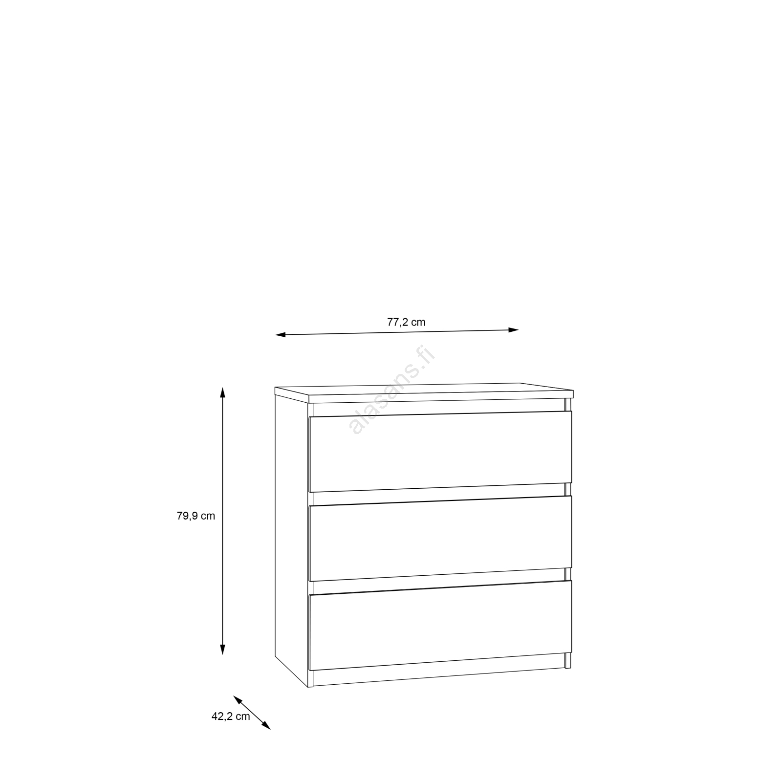 • Useiden vetolaatikoiden ansiosta lipasto tarjoaa runsaasti säilytystilaa arjen tavaroiden järjestämiseen.