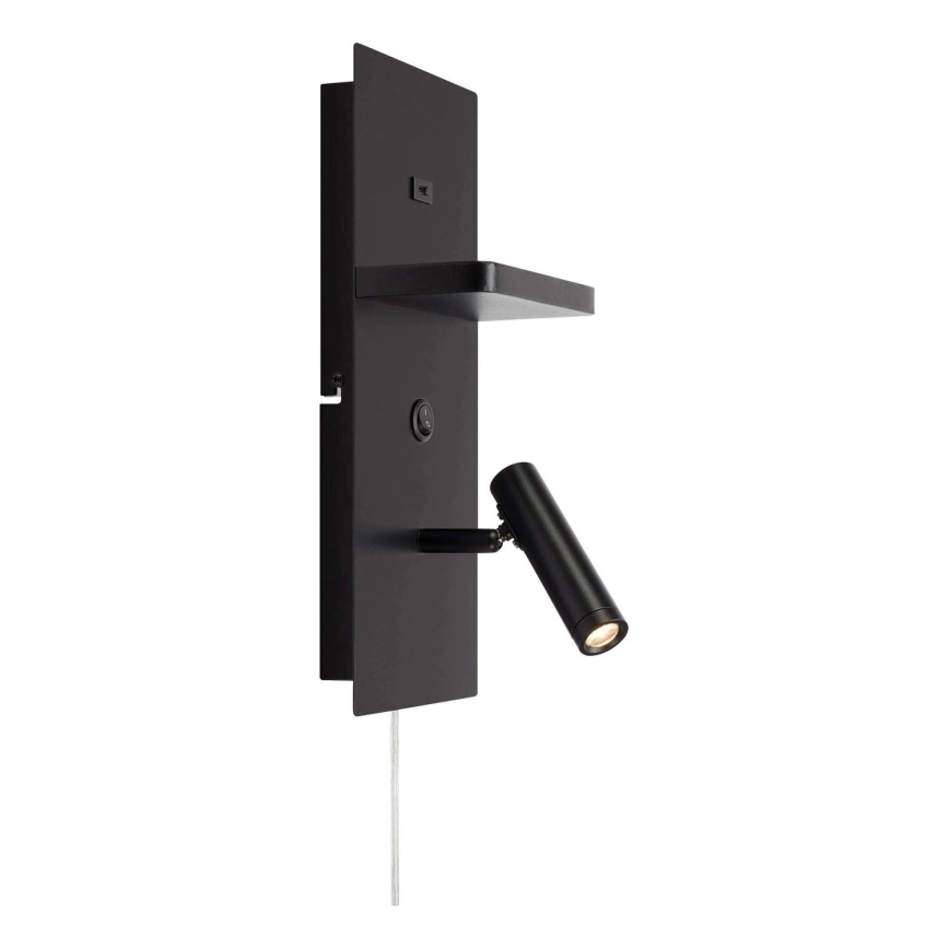 Markslöjd 109018 - LED-seinävalaisin CARICA 4W/230V, hyllyllä ja USB-portilla, musta | Alasans