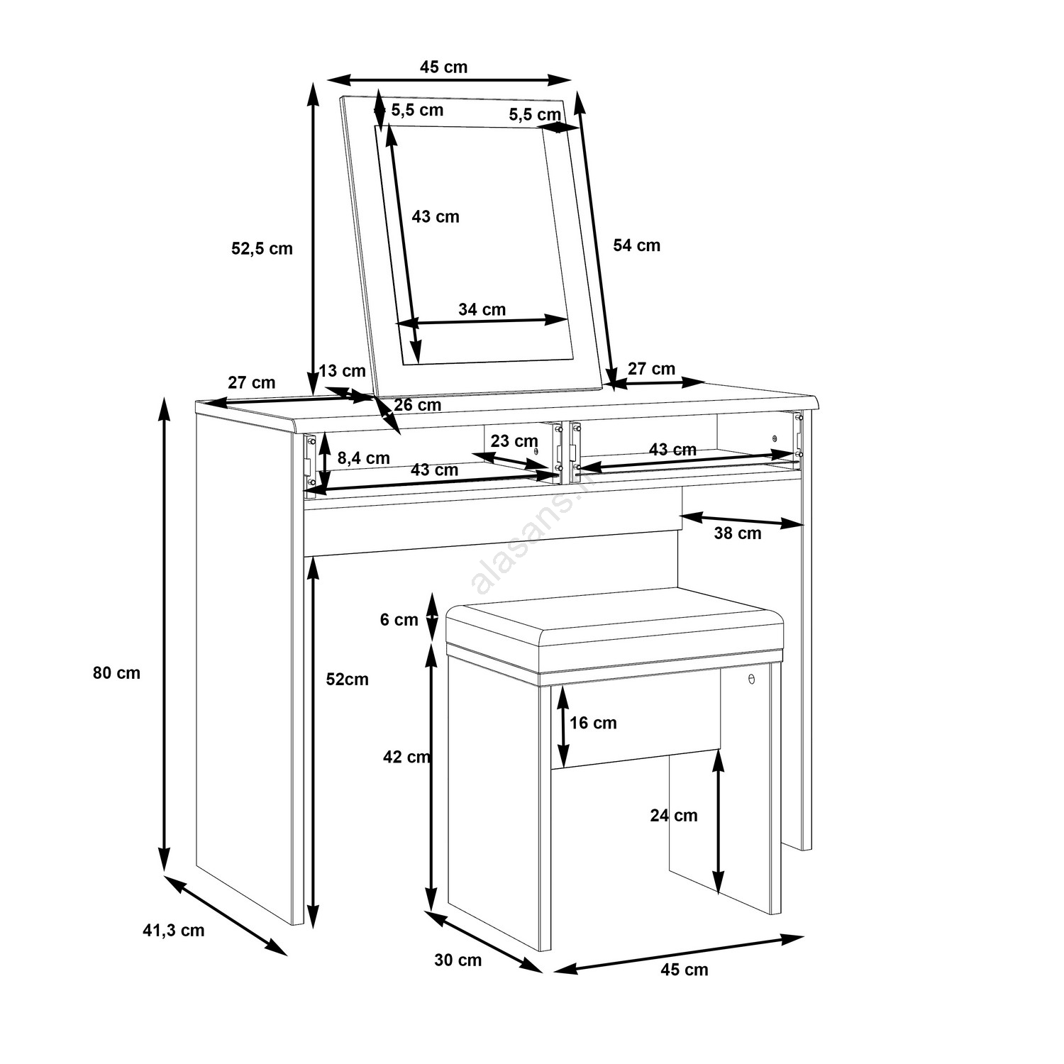Meikkipöytä ERO + taburetti ruskea/musta | Alasans