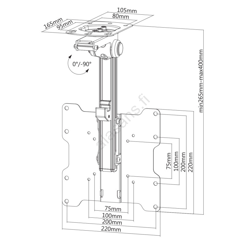 • Tarjoaa säädettävän korkeuden 265–400 mm ja näytön kallistuksen alueella 0°:sta -90°:een.