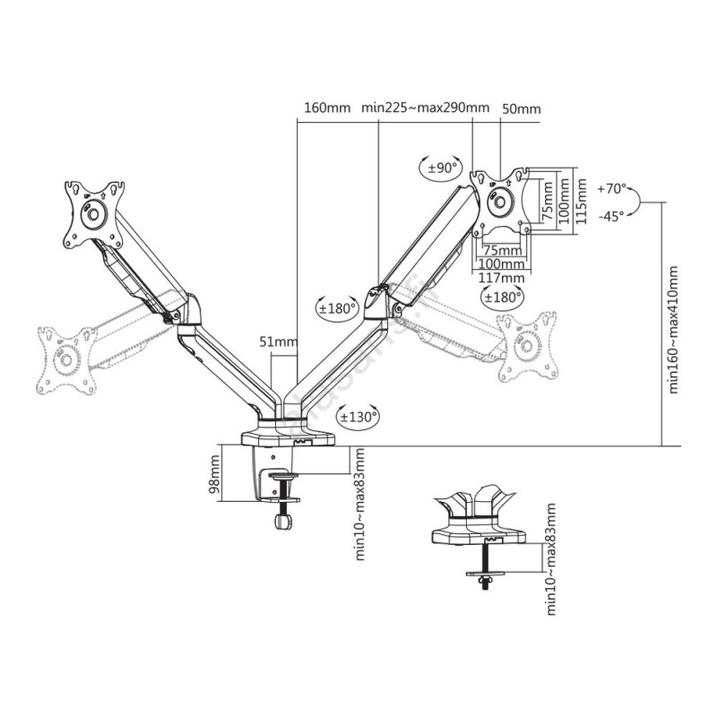 • Tarjoaa 2 tapaa kiinnittää pöytäpintaan: reunakiinnitys (työpöydän paksuus 10 - 83 mm) tai läpikiinnitys mihin tahansa pöydän kohtaan.