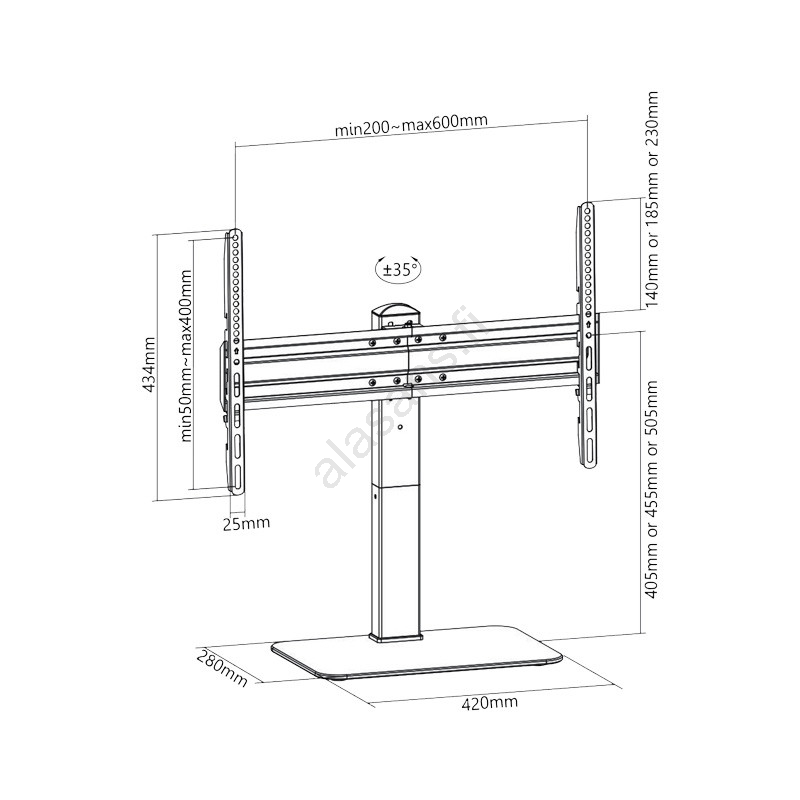 • 75° kääntökulman (±35°) ansiosta voit suunnata television juuri tarpeidesi mukaan.