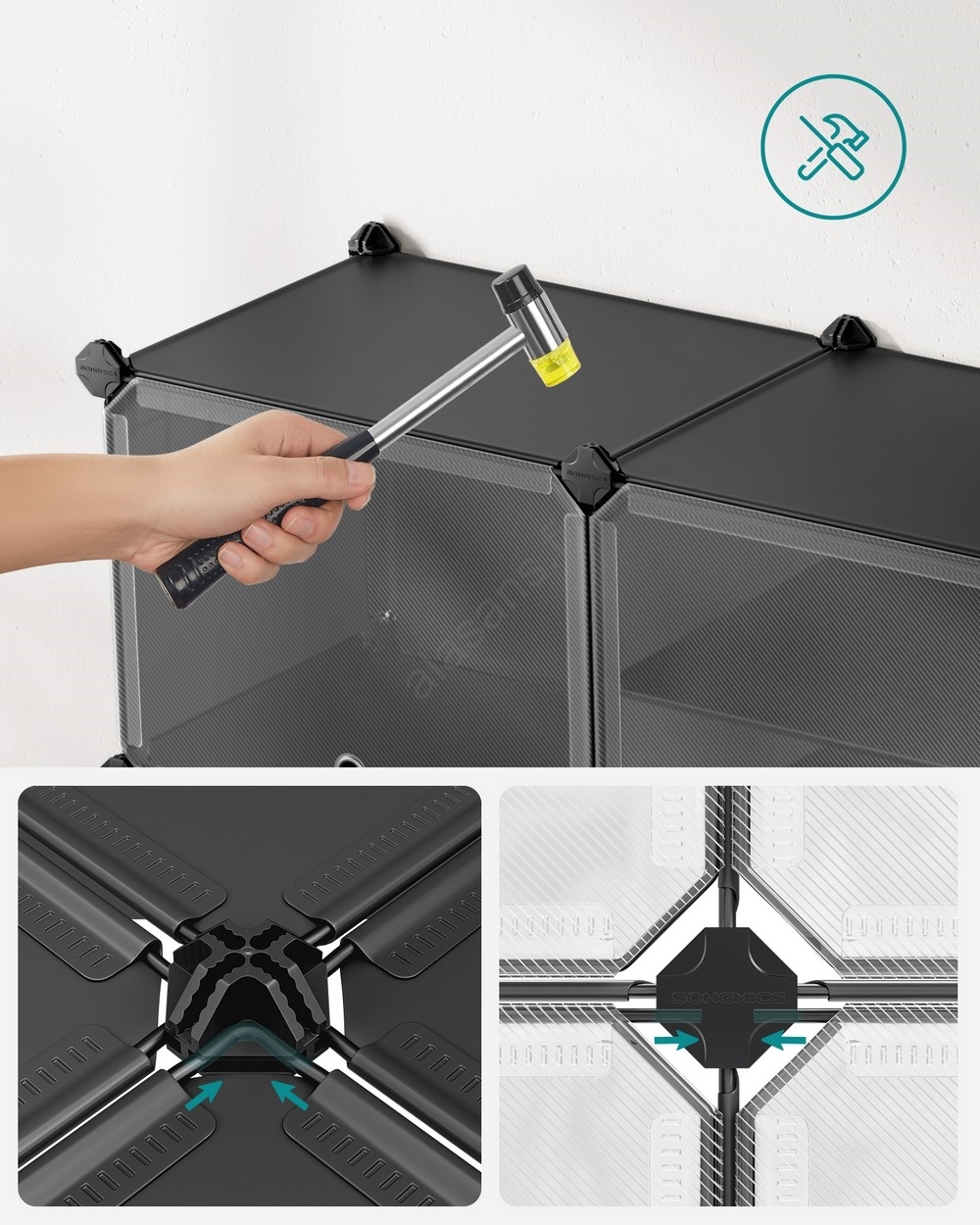• Muuta se erillisiksi yksiköiksi tai jaa se jopa kahdeksi pieneksi hyllyksi kenkien, vaatteiden tai hygieniatarvikkeiden säilytystä varten kylpyhuoneessa tai muussa haluamassasi tilassa.