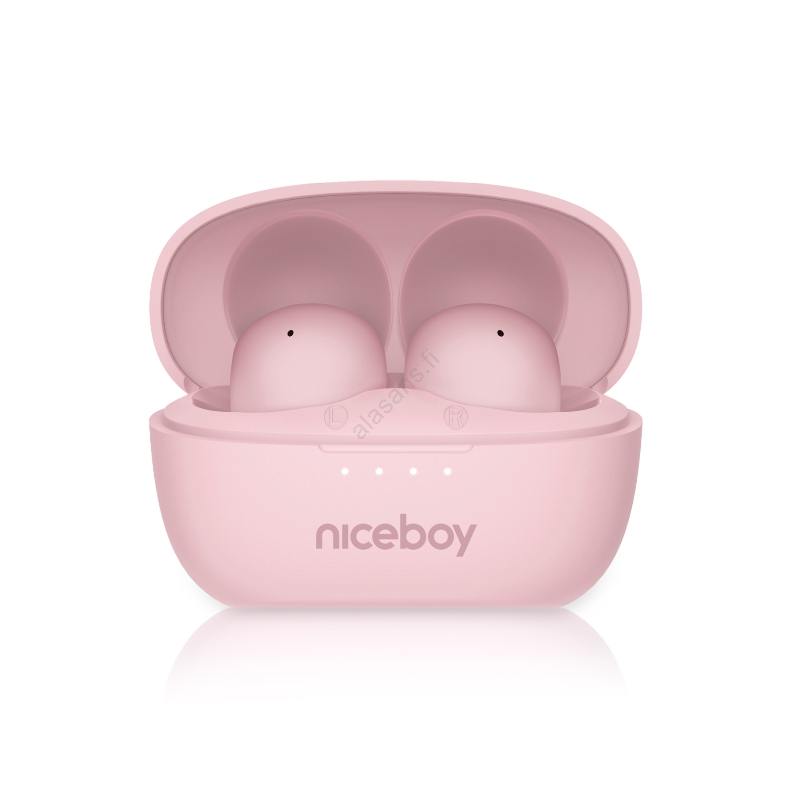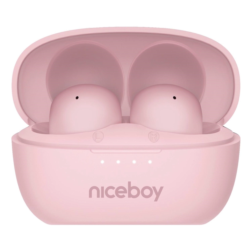 Niceboy Podsie 4 POP - Langattomat nappikuulokkeet, latauskotelo 400 mAh + 2 x 40 mAh, IPX4, vaaleanpunainen