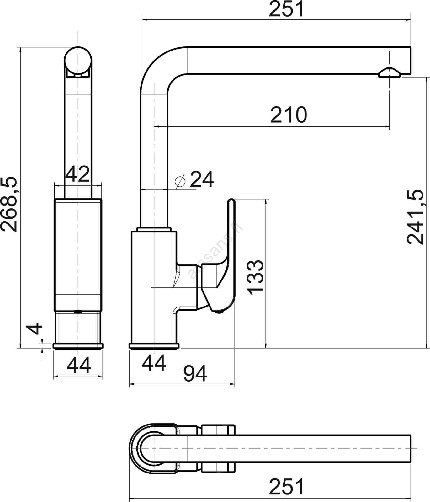Novaservis - Keittiöhana NOBLESS SHARP kiiltävä kromi | Alasans