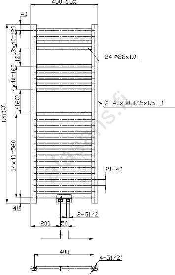 Novaservis - Kylpyhuoneen tikaspatteri 318W/230V 120x45 cm kiiltävä kromi, suora