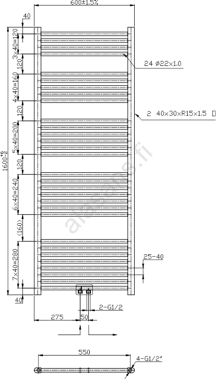 Novaservis - Kylpyhuoneen tikasradiaattori 836W/230V 160x60 cm musta suora | Alasans