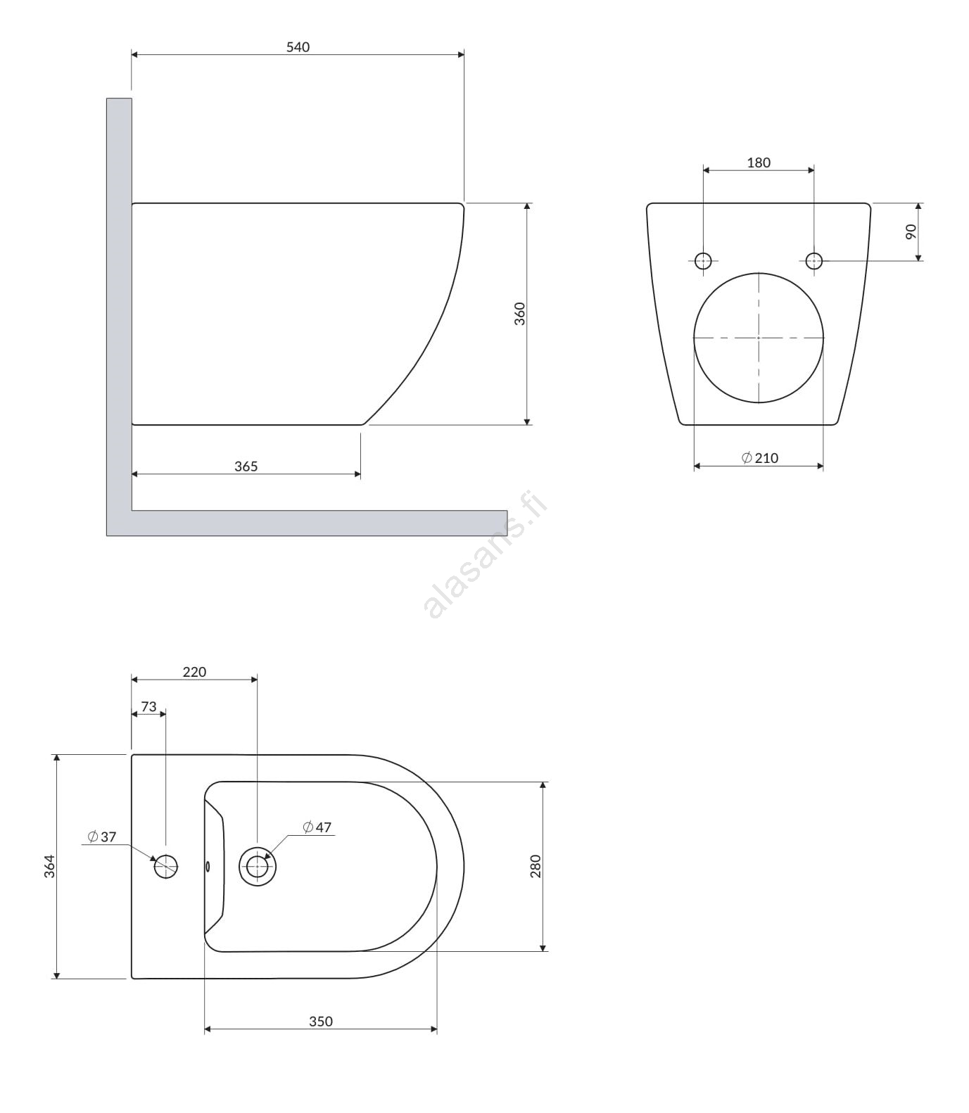 • Käytännöllinen seinään kiinnitettävä bidee.