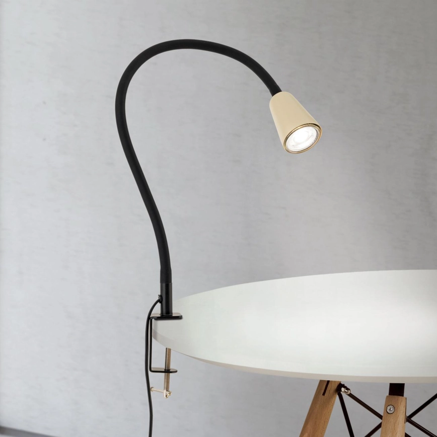• Joustava pöytävalaisin klipsillä DOTTY 1xGU10/10W/230V messinki/musta