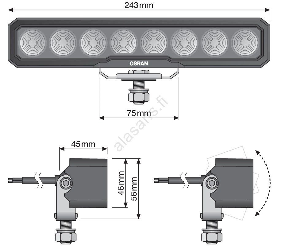 Osram-LED-kohdevalo autoon LIGHTBAR WL VX250-WD LED/36W/12/24V 6000K | Alasans