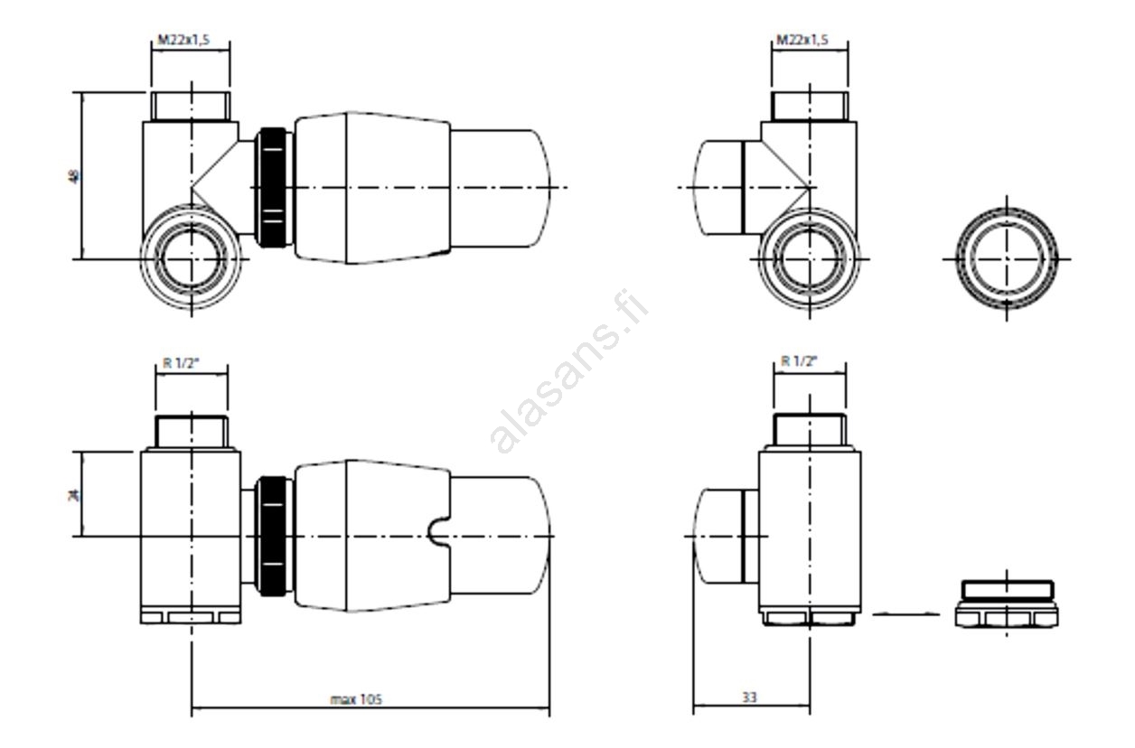 P.M.H. INTER-RC - Venttiili INTER-termostaattipäällä oikea/kiiltävä kromi | Alasans