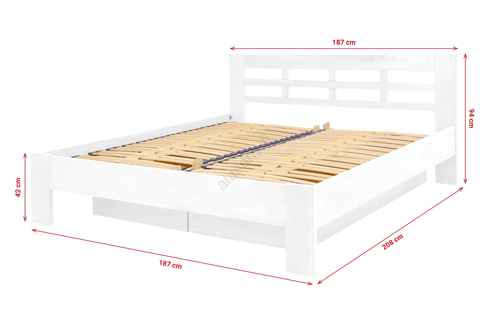 • Kaksi vuoteen puusta, jossa on säilytystila ANGELA 180x200 cm valkoinen