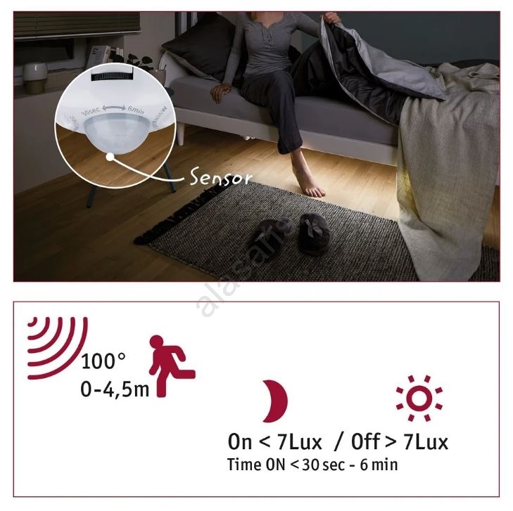• Kun poistut vuoteesta, valo aktivoituu tunnistimen avulla ja mahdollistaa turvallisen liikkumisen huoneessa.