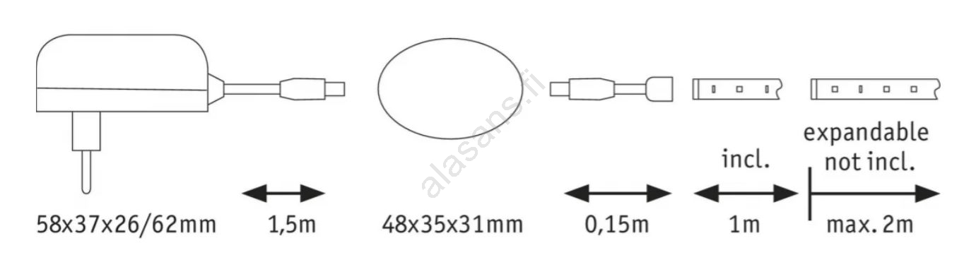 • Täydellinen setti sisältäen nauhan ja virtalähteen.