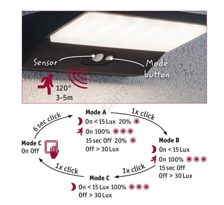 Paulmann 94333 - LED/7,4W IP44 Ulkovalo anturilla HOUSE 230V | Alasans